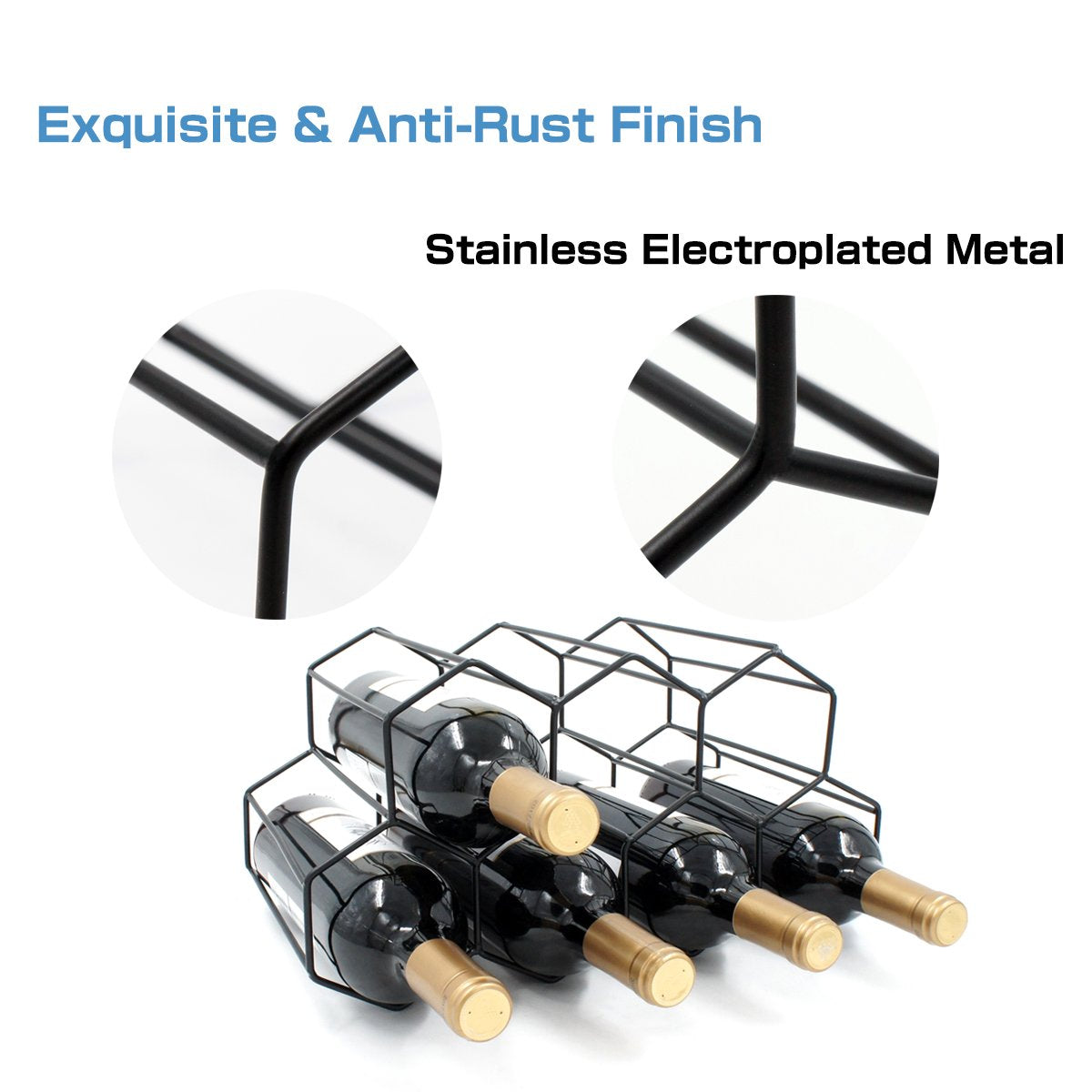 - Durable Metal Construction: Made from sturdy metal with a rust-resistant gold finish, this wine holder countertop is built to last and maintain its beauty