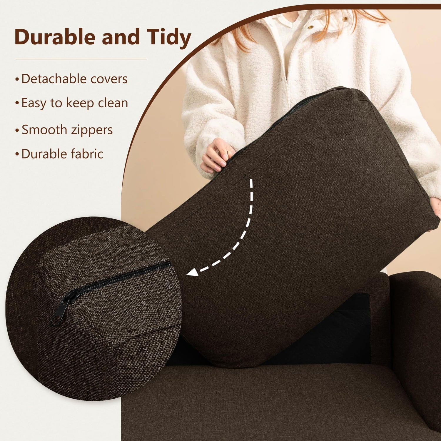 - 【Thickened Cushions】Experience ultimate comfort with thickened back cushions of sleeper sofa that provide support for your shoulders, hips, and lower back, alleviating spinal compression.The large sofa is made of skin-friendly fabric and the cushion covers are detachable and washable.