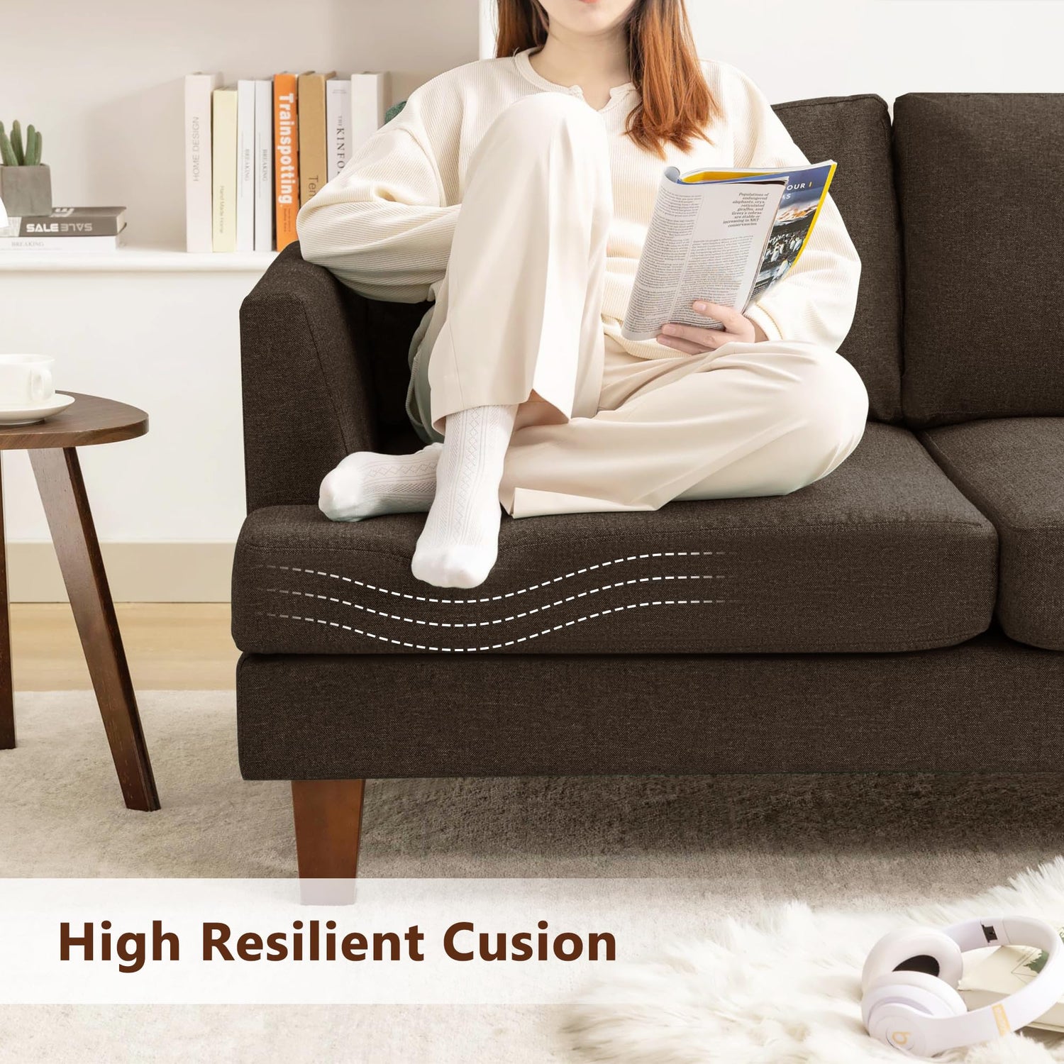 Busaurus 3 Seater Sofa Couch with Deep Seats, 89" Mid Century Modern Upholstered Sofa with Armrests, Comfy Couches for Living Room, Bedroom, Apartment and Office (Brown)