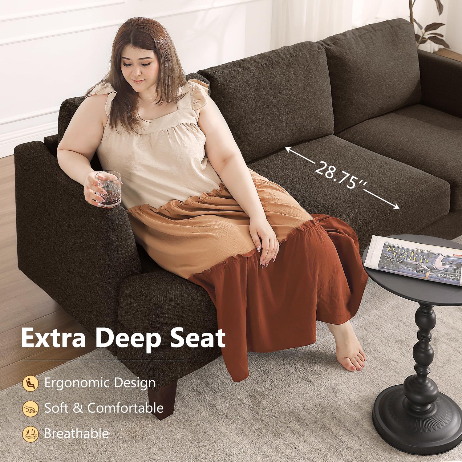 - 【Deep & Comfy Couch】Experience leisure in style with our 3 seater sofa – a spacious and cozy spaces for your relaxation needs. Featuring a 28.75 inch deep seat, generous armrests, and soft cushion sets, this comfy couch is designed to effortlessly accommodate your living room or bedroom.