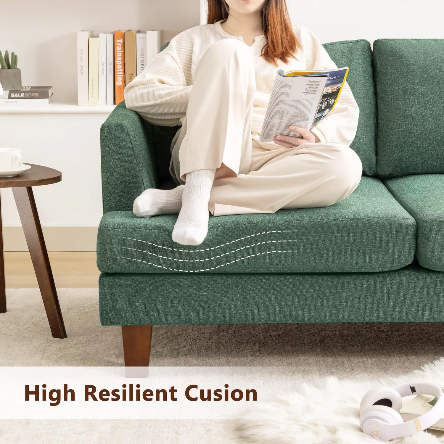 Busaurus 3 Seater Sofa Couch with Deep Seats, 89" Mid Century Modern Upholstered Sofa with Armrests, Comfy Couches for Living Room, Bedroom, Apartment and Office (Green)