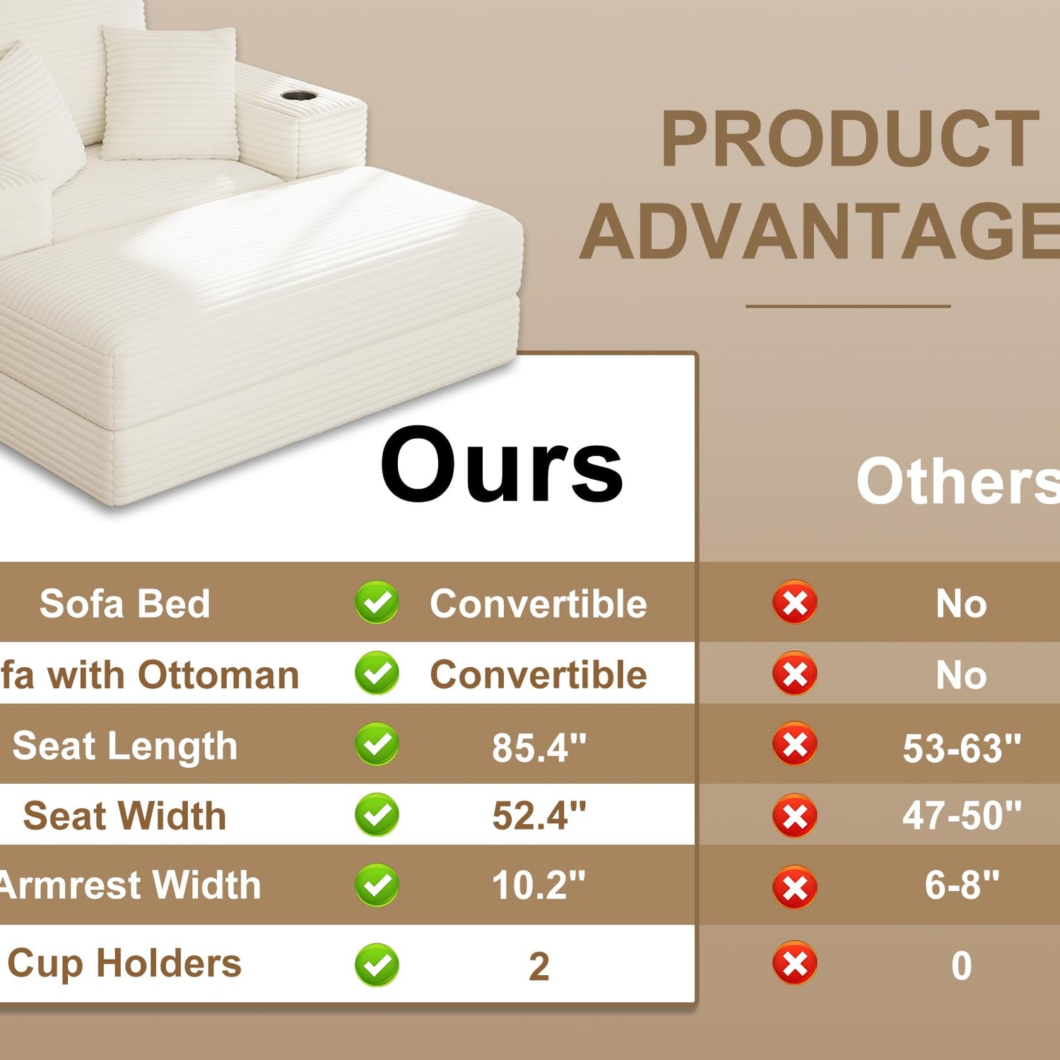 - Multiple Purpose: our 3 in 1 oversized chair can be easily transformed into a comfortable sofa with footrests or a convenient sleeper bed. This multifunctionality makes the large chaise lounge accommodating a wide range of activities from gaming to sleeping
