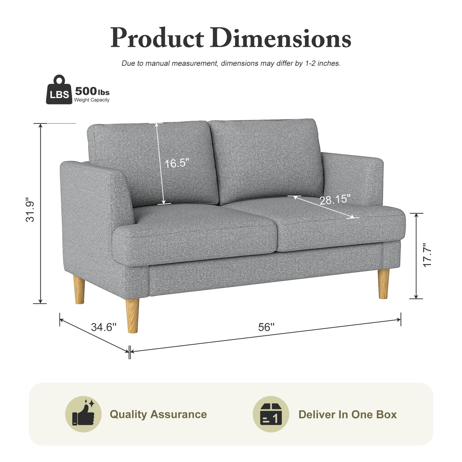 Busaurus Loveseat - Mid Century 56" Upholstered 2-Seater Couch for Living Room, Bedroom, Apartment - Grey