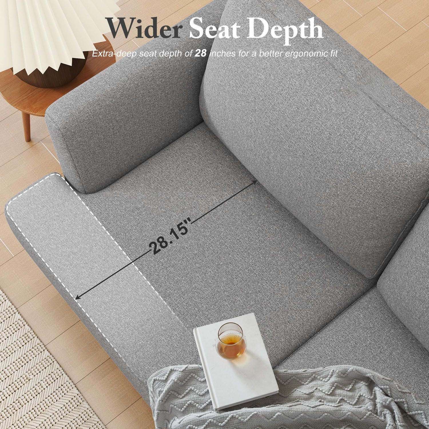 - Generous Seat Depth: Experience ultimate comfort with our sofa's ample seat depth of 28.15", allowing you to sink in and relax. Whether you're lounging or sitting upright, the deep seats provide a cozy and indulgent seating experience.
