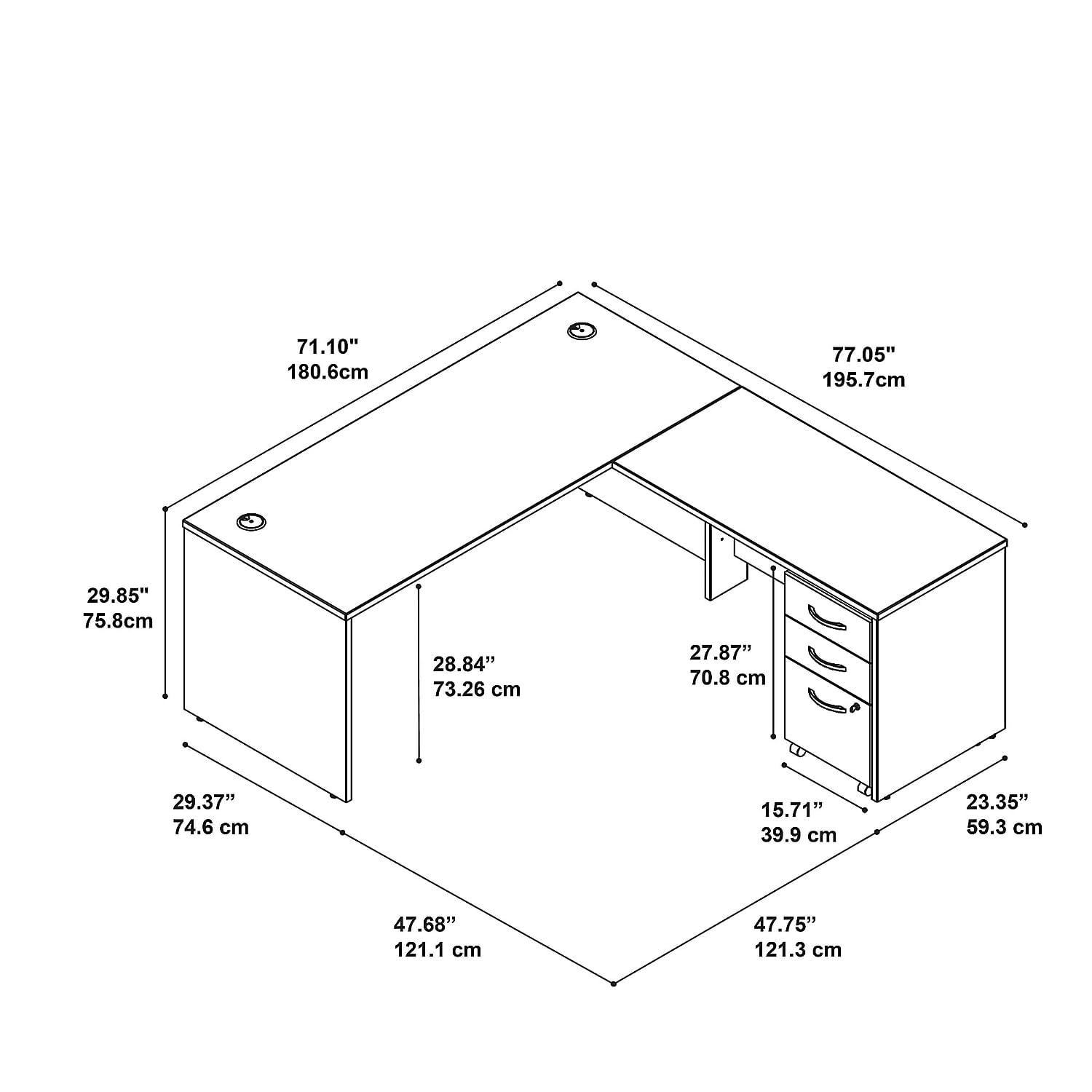 - Bundle includes: 72W x 30D Desk, 48W Return, 3 Drawer Mobile File Cabinet