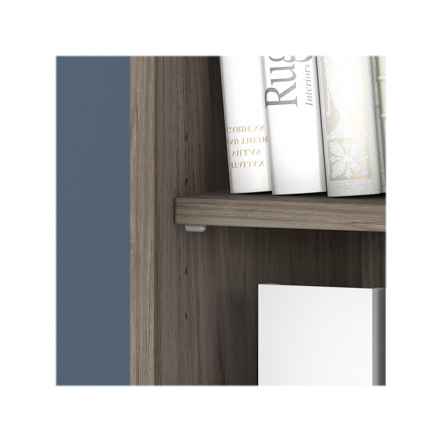 Transform your workspace with the Bush Business Furniture Studio C 5-Shelf Bookcase with Doors, a perfect blend of style and functionality. Crafted from laminate over engineered wood, this bookcase features a stunning modern hickory finish that effortlessly complements contemporary and traditional decors alike.