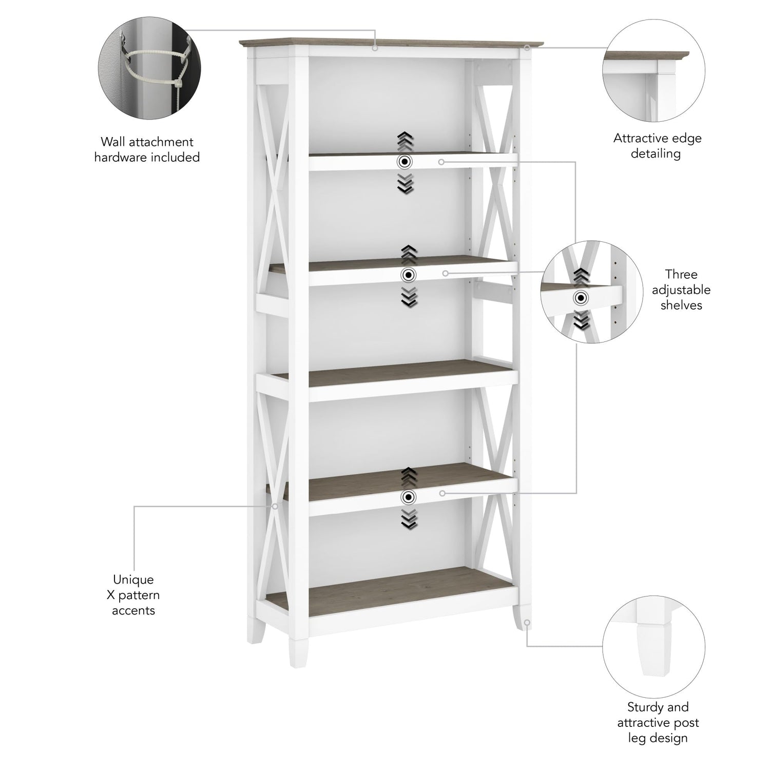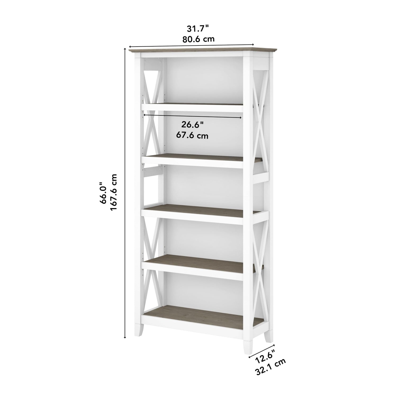 Bush Business Furniture Key West 5-Shelf Bookcase in Shiplap Gray and Pure White