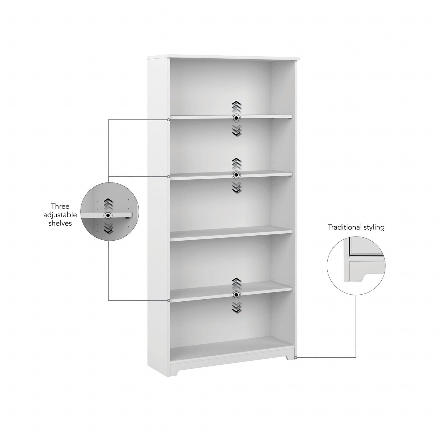 Bush Furniture Cabot Tall 5-Shelf Bookcase in White - Stylish Organizer for Home & Office