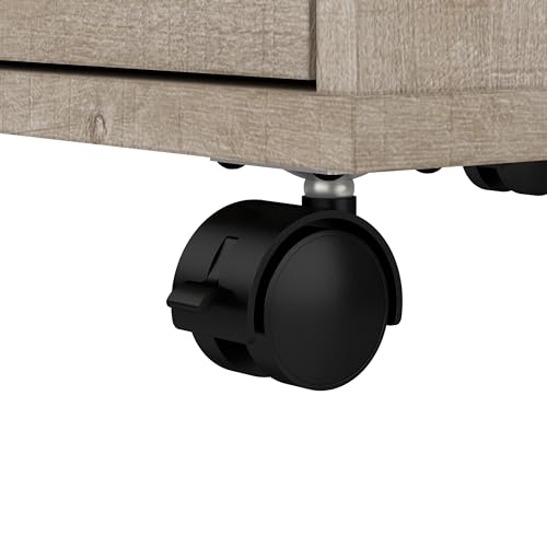 Details: The Bush Furniture Key West 60W L Shaped Desk with Mobile File Cabinet turns any room into a practical home office with easy going style. Save floor space in compact areas by rolling the Cabinet under the Desk and placing the set in a corner, or make use of the fully finished backs to take a prominent position in the middle of the room. At 60W x 60D, the durable work surface is spacious enough to spread out with a computer, paperwork and more when taking on your task of the day. A sturdy post leg design with unique X pattern accents on the side panels creates a relaxed, open appearance while quality construction and materials allow the corner desk to support up to 200 pounds. The 2 drawer filing cabinet rolls on dual-wheeled casters and locks into place for secure positioning. The file drawer opens on full-extension ball bearing slides and accommodates letter size documents while a box drawer provides storage for office supplies and utensils. Available in your choice of several casual finishes, this L shaped computer desk with storage coordinates with a wide range of products including Desktop Organizers, a Lateral File Cabinet and a 5 Shelf Bookcase (all sold separately) to complete your personal workspace with laid back charm of farmhouse decor. This home office furniture set is tested to meet ANSI/SOHO quality standards for safety and performance and is backed by the Bush Furniture 1 Year Manufacturer's Warranty.