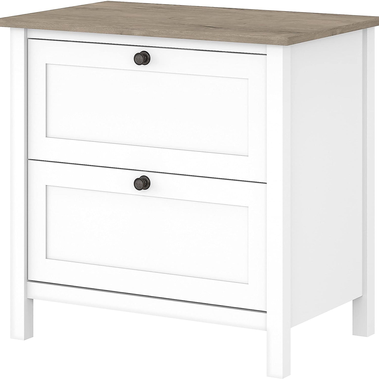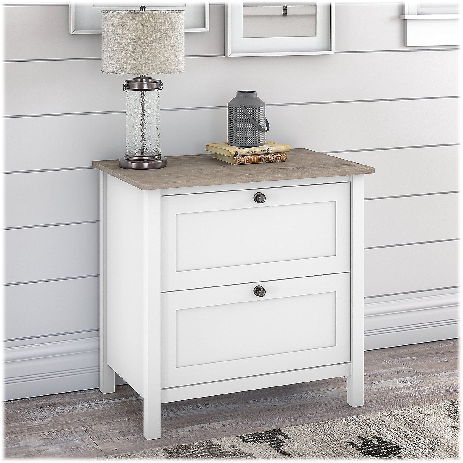 Bush Furniture Mayfield 2 Drawer Lateral File Cabinet in Pure White and Shiplap Gray