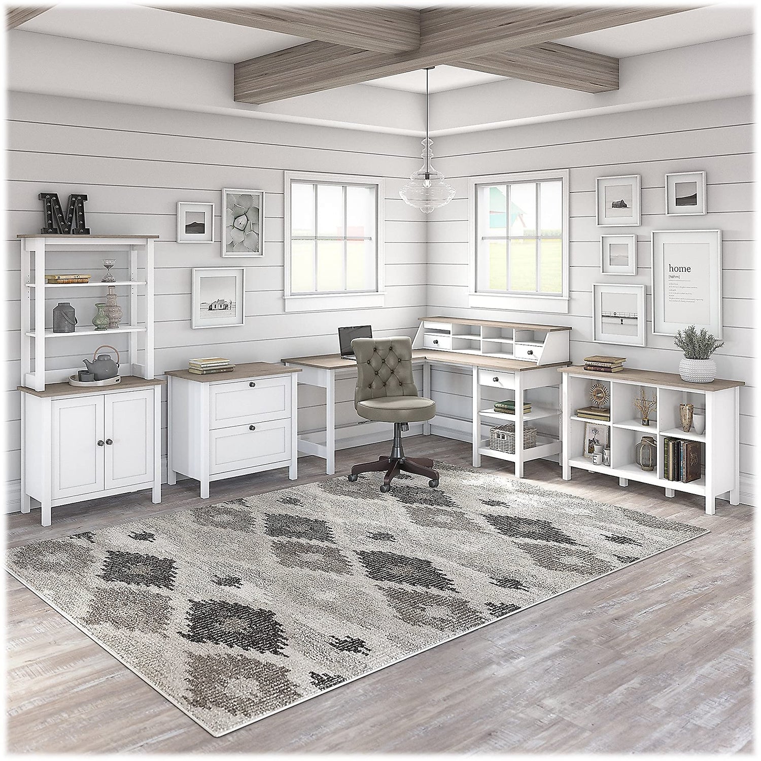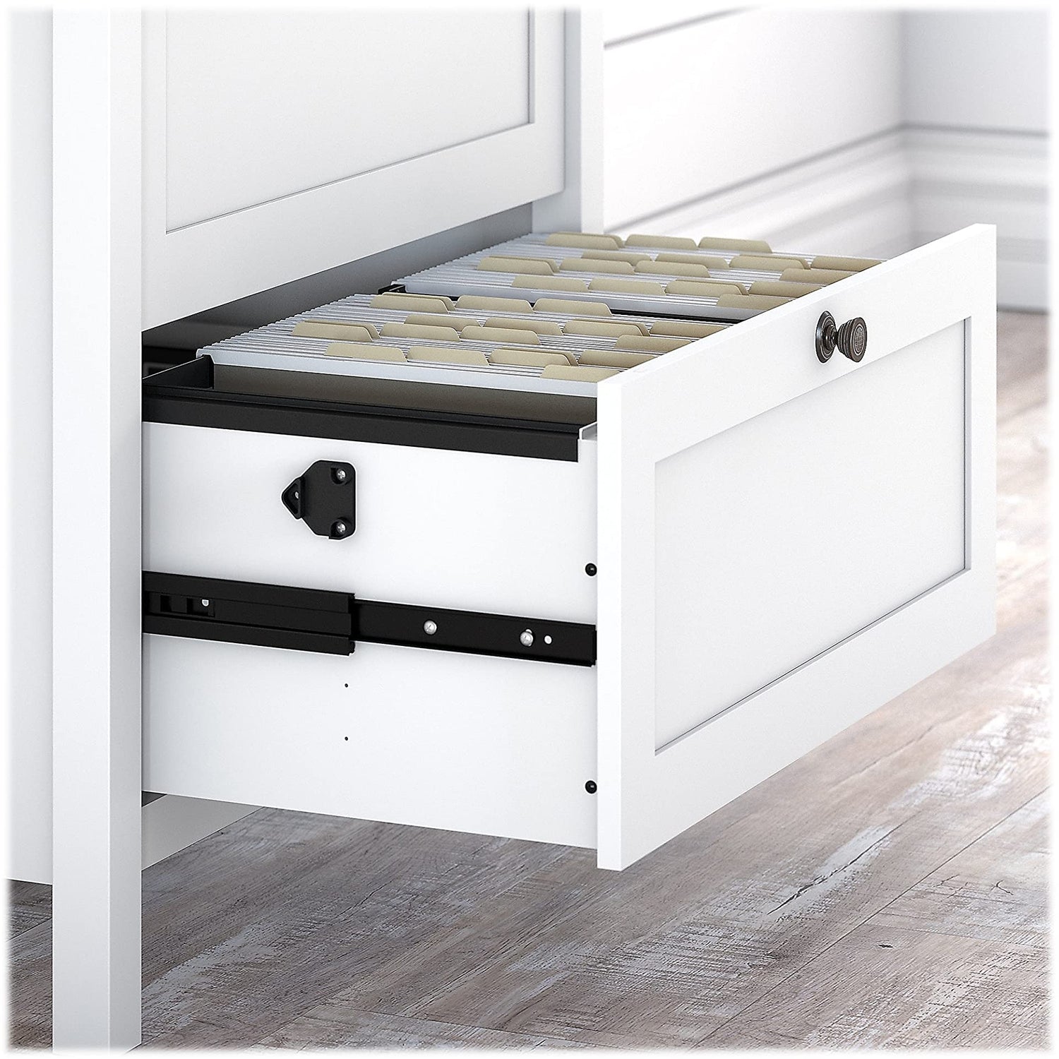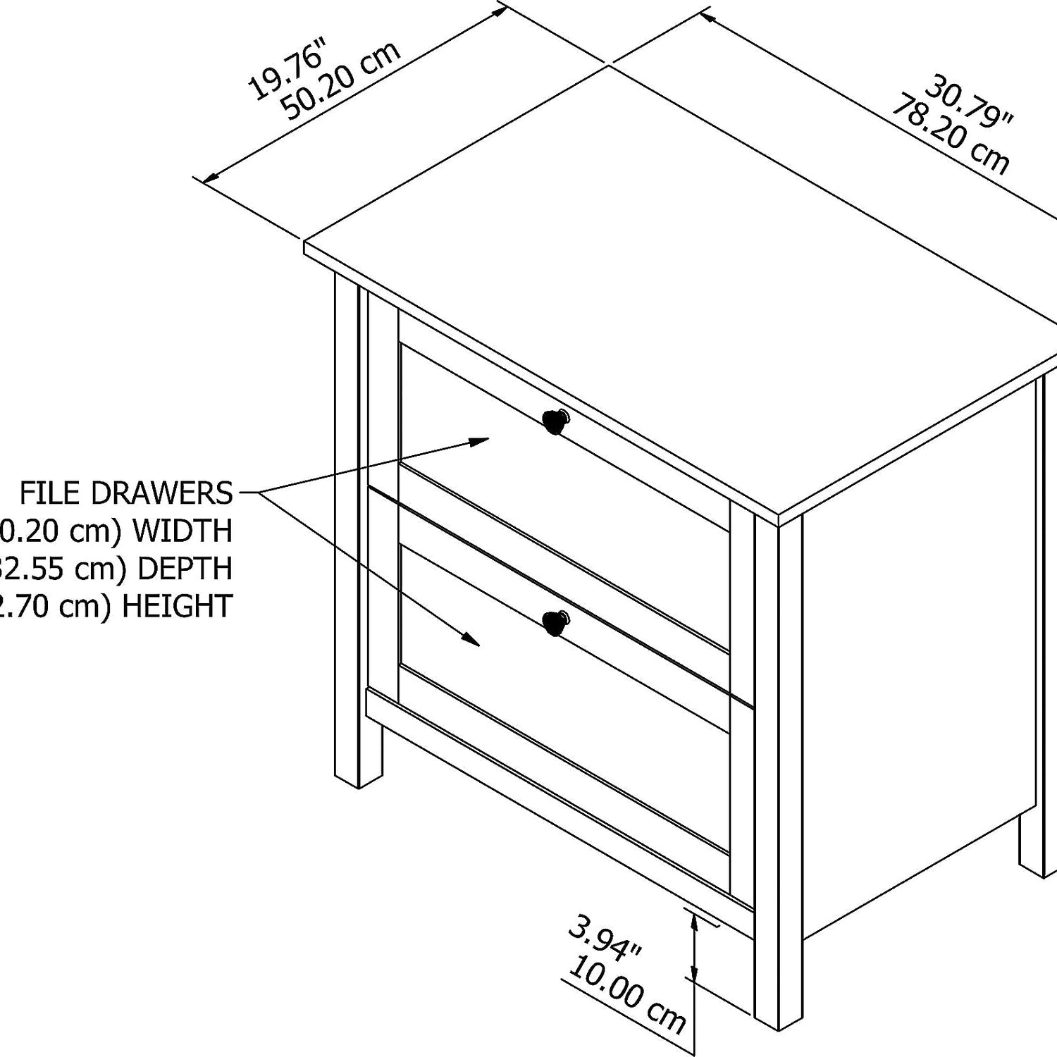 Details: Keep important paperwork organized and accessible with file storage that suits your casual home. Highlighted by its relaxed modern farmhouse style, the Bush Furniture Mayfield 2 Drawer Lateral File Cabinet makes a great addition to virtually any living space. Drawers open on smooth full-extension ball bearing slides for an effortless reach to legal, letter and A4-size documents. Matching height dimensions allow the filing cabinet to offer an extended work surface when placed next to any Mayfield Computer Desk, and a Tall Hutch Organizer can be attached to add open storage for books, decorations and more (coordinating items sold separately). The sturdy post leg design promises to withstand years of use in your home office or living room. This 2 Drawer File Cabinet is tested to meet ANSI/SOHO quality standards for safety and performance and is backed by a 1 Year Warranty.