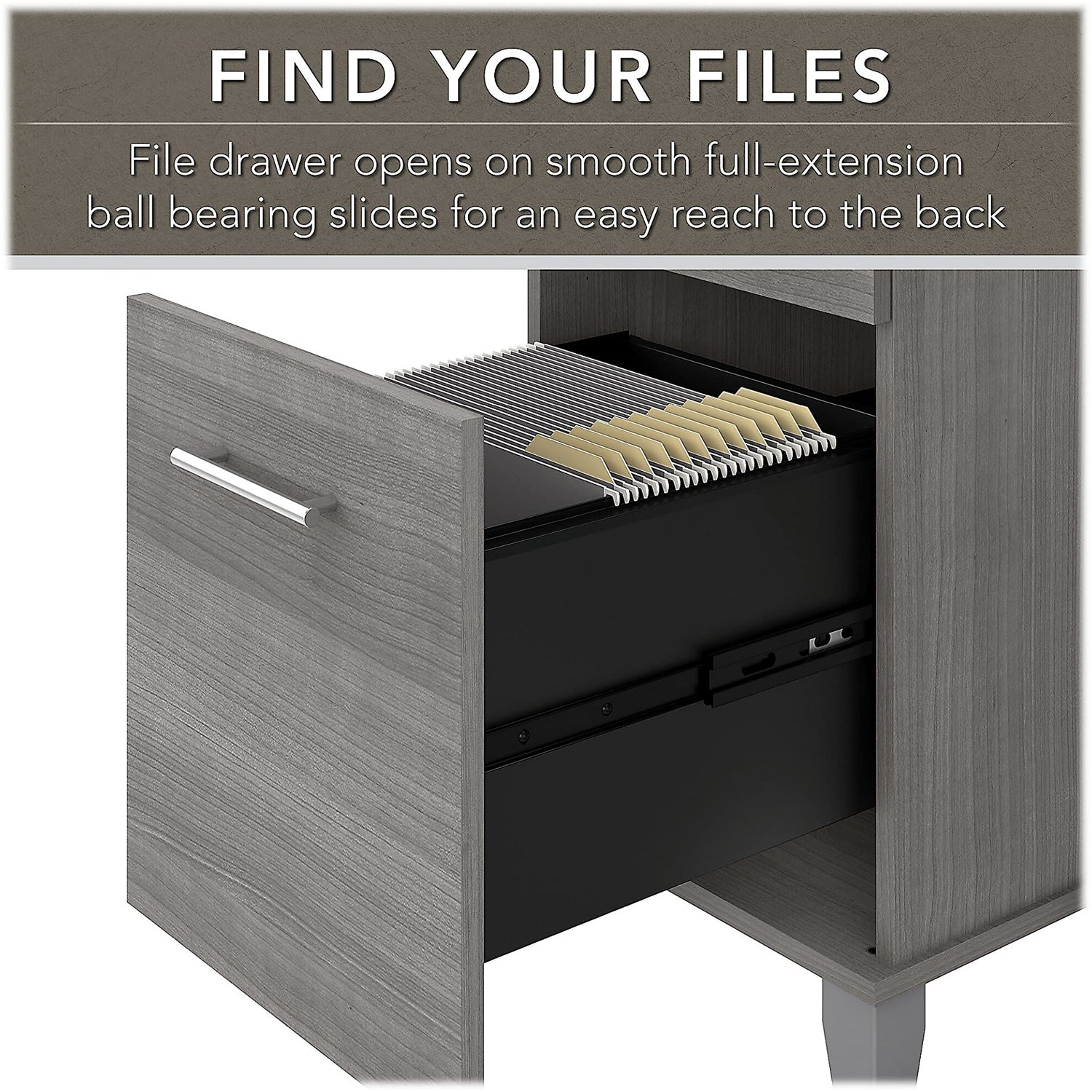 - Stay organized - The file drawer of the office desk is equipped with full-extension ball bearing slides, allowing for smooth and easy access to your files, and it accommodates both legal and letter size documents, providing ample space to store all your paperwork and keep your workspace organized.