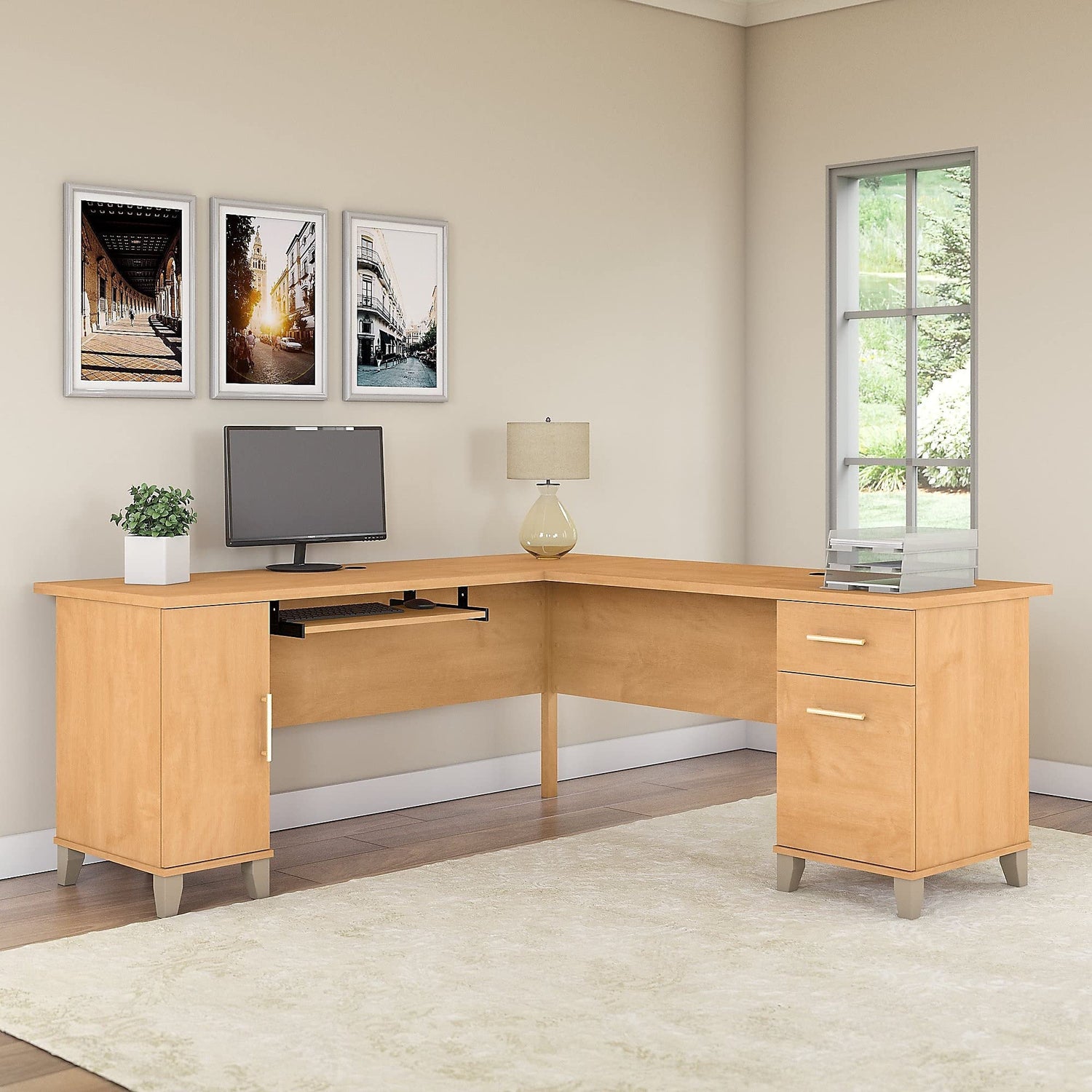 Bush Furniture Somerset 72W L Shaped Desk with Storage in Maple Cross, 72-inch Large Corner Computer Table for Home Office Workspace