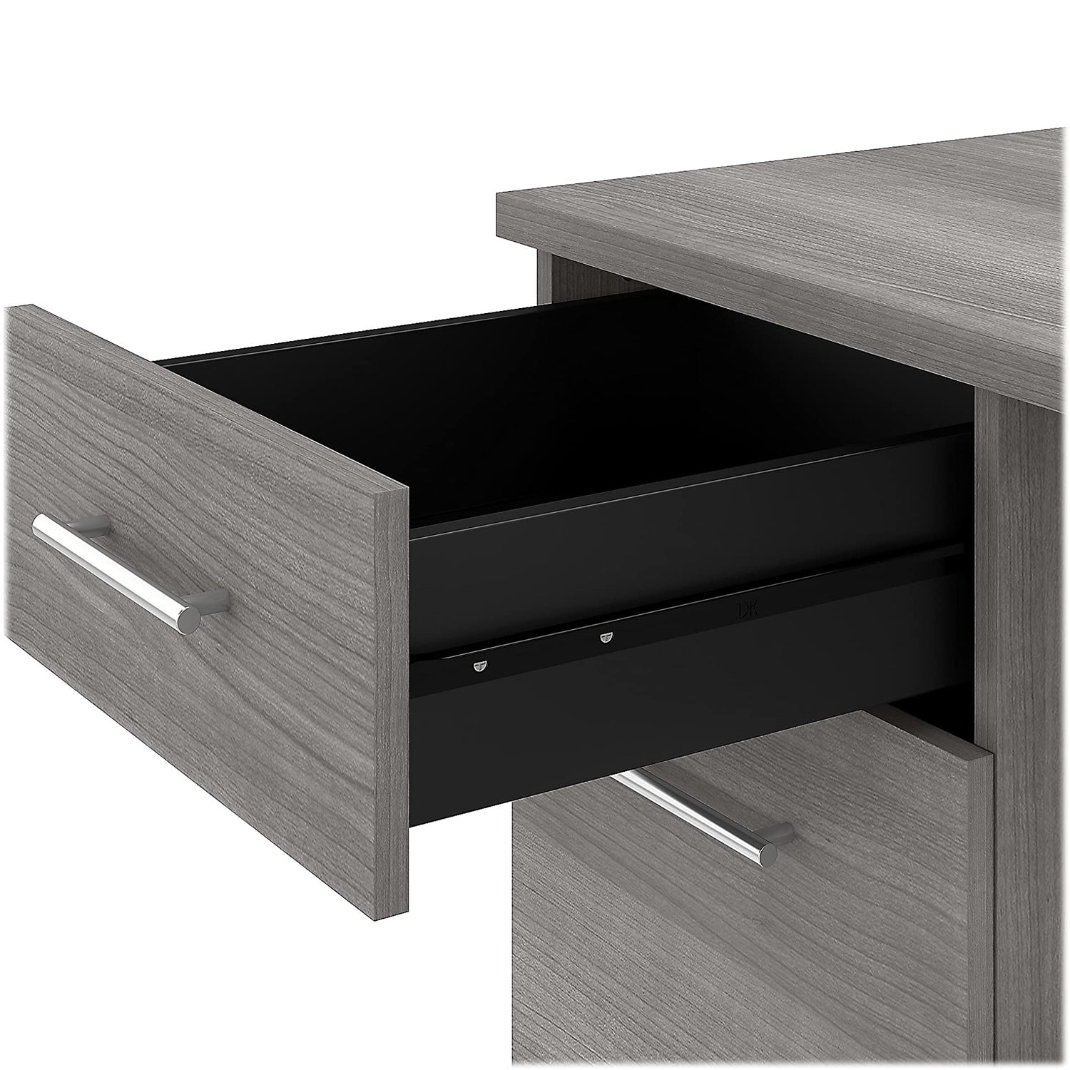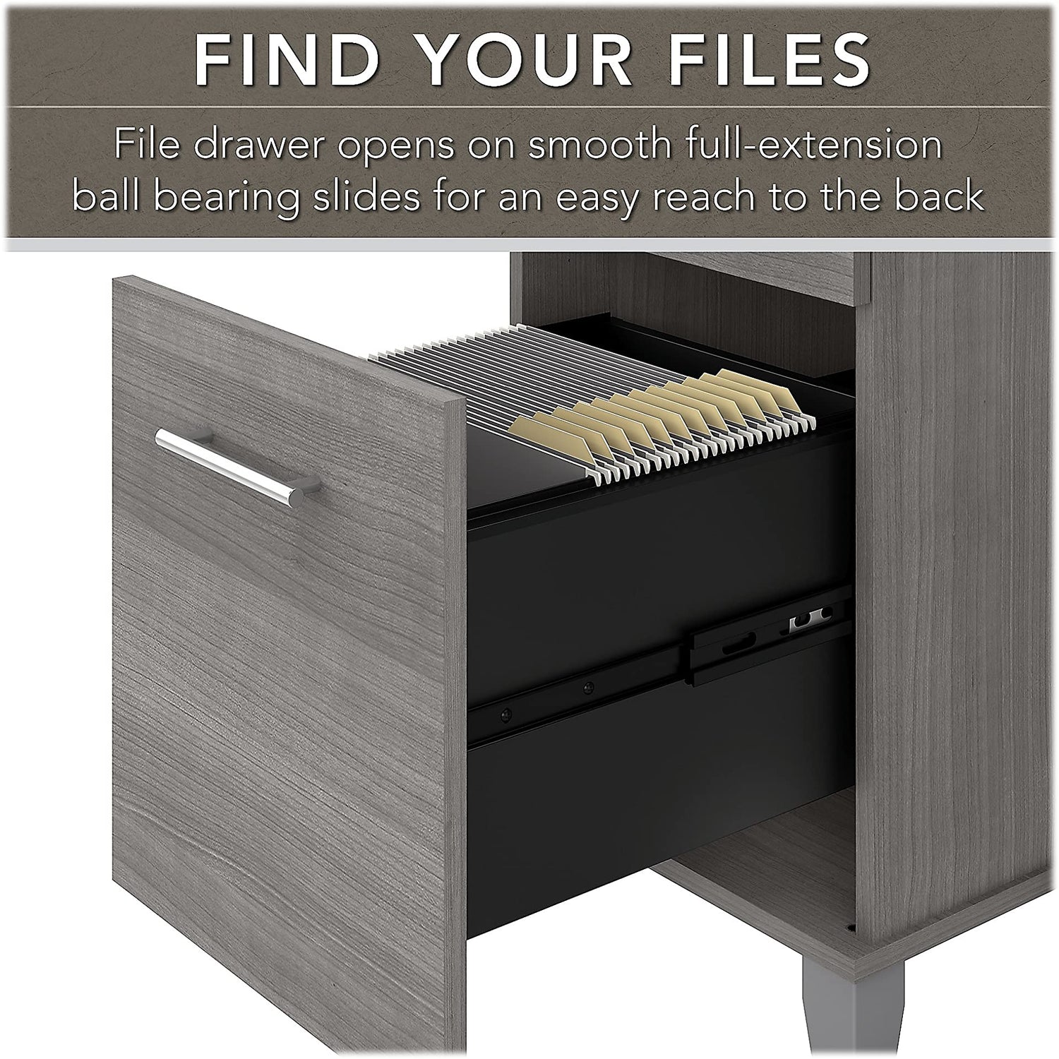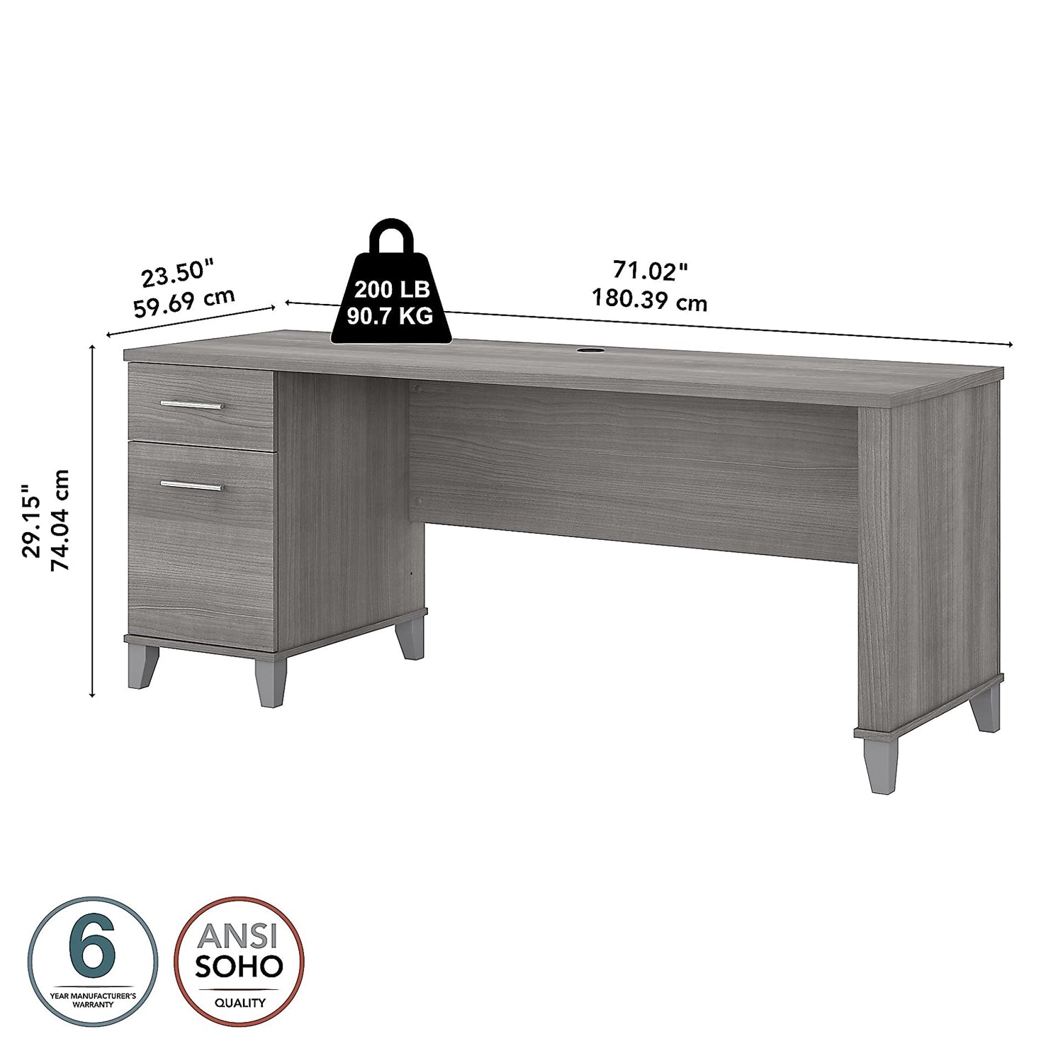 Details: An expansive work surface and built-in storage make the Bush Furniture Somerset 72W Office Desk with Drawers a perfect choice for your home office. The spacious desktop offers plenty of room to spread out with a computer and paperwork and includes a convenient wire management grommet to keep cords and cables secure and out of sight. The Desk's file drawer opens on smooth full-extension ball bearing slides for easy access to legal and letter size documents while a box drawer keeps the office supplies and utensils you need close by. Drawers can be mounted to either side for a custom configuration, and a fully finished back side allows the Desk to look great no matter where it's positioned in the room. Somerset's transitional styling includes your choice of several attractive finish options with tapered leg accents and contemporary metal hardware for an appealing look that works with virtually any decor. The computer desk can also be used with the coordinating Somerset 42W 3 Position Sit to Stand Return (sold separately) to create an ergonomic height adjustable workspace. The 72W Office Desk with Drawers is tested to meet ANSI/SOHO quality standards for safety and performance and is backed by the Bush Furniture 6 Year Manufacturer's Warranty. See the full collection for products to expand your home or small office with sophisticated style.