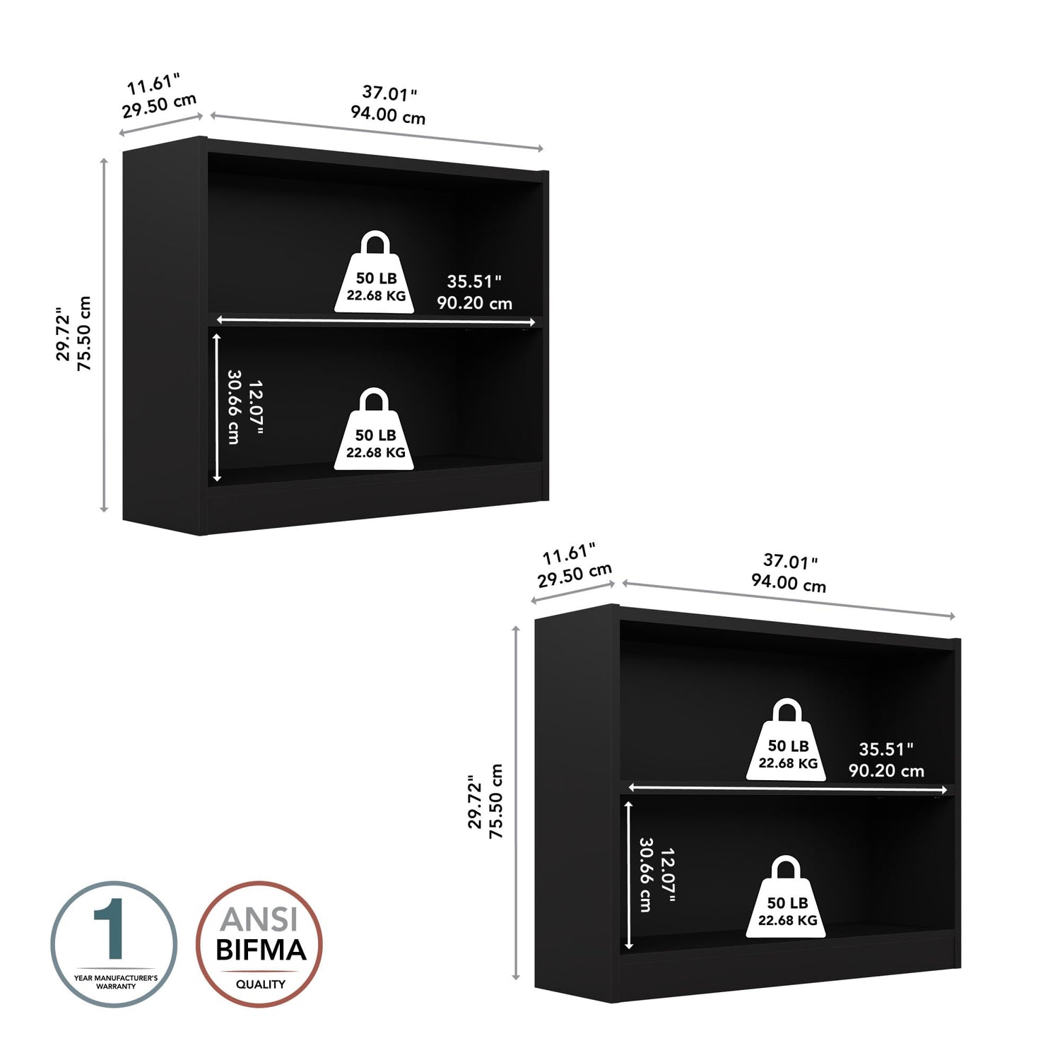 Bush Furniture Universal Black 2 Shelf Bookcase Set - Versatile Storage and Display for Home Office or Living Room