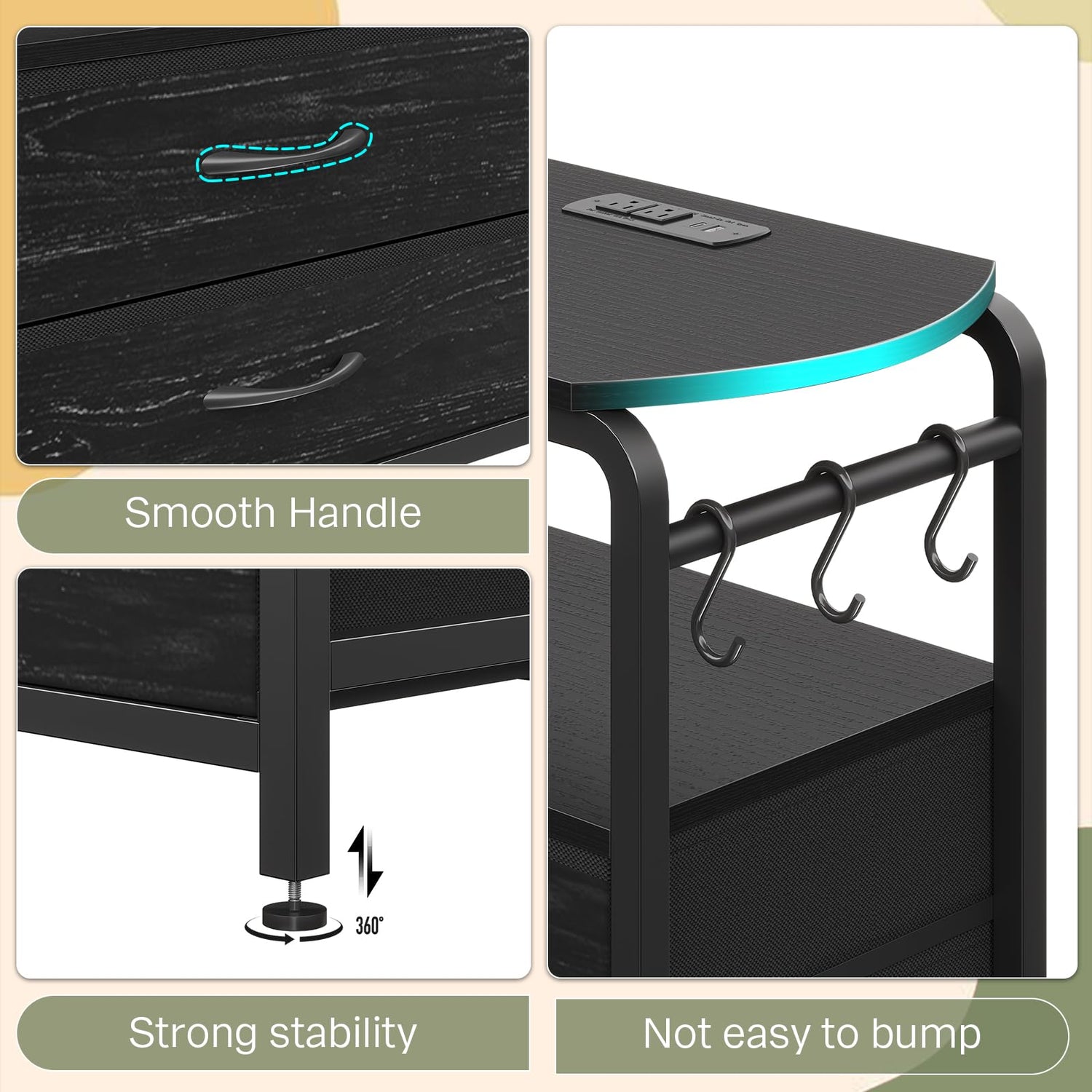 - 【Sturdy, Safe and Stable】Dresser tv stand Made from high-quality fabric, durable wooden top and metal frame. With a top surface that can withstand a remarkable weight of over 110LBS, this tv stand dresser ensures secure and stable support for your TV, providing peace of mind and reliability. tv stand with drawers for bedroom can be lightweight to move, which drawers glide smoothly for easy access. The four sides are rounded to prevent collisions, and there are 6 additional metal hooks for hanging small accessories. An anti-tip kit is included to ensure this bedroom TV stand is stable. The 8 adjustable feet keep it stable on uneven surfaces and safeguard your floors from scratches
