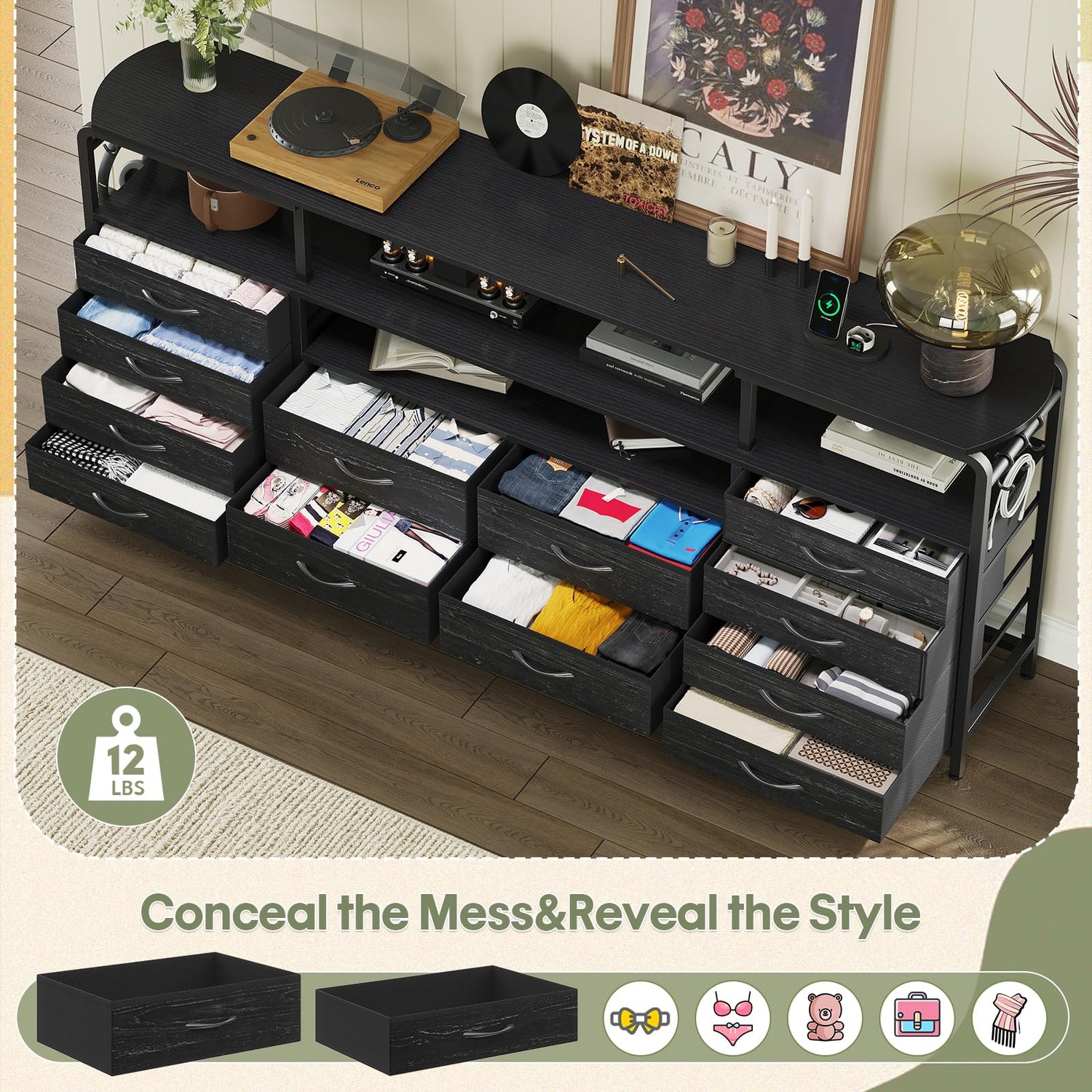 - 【Tv Stand With Storage Amount】Dresser tv stand for bedroom, Featuring 12 Removable fabric drawer, this tall tv stand provides generous storage capacity, allowing you to neatly organize and store your media devices, DVDs, gaming consoles, books, other accessories. The drawers are great for additional, out of sight storage. Each drawer offers ample space for your media collection, gaming accessories, clothes, beddings, and more. Enough to hold tons of items and not bend or cave in. Enjoy a clutter-free entertainment area where everything is within reach and well-organized