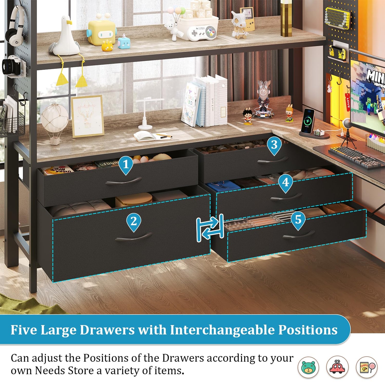 - 【5 Large-Capacity Drawers】The bunk bed with desk is equipped with 5 practical storage drawers, which can easily classify and store various items such as toys, clothes, bed sheets, etc., facilitating sorting and categorization. Moreover, the positions of the drawers can be flexibly adjusted according to actual needs, allowing you to create personalized storage solutions at will