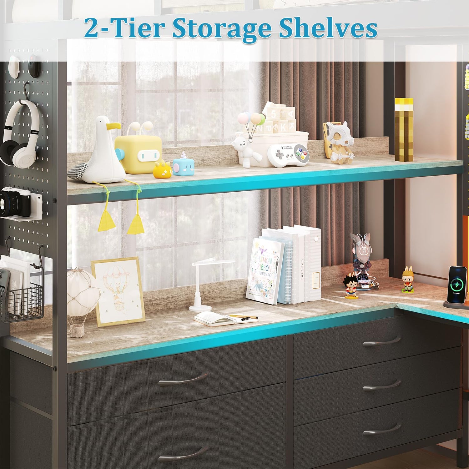 - 【Colorful LED Lights】busyaeh loft bed with storage is equipped with LED lights, which has more than 60,000 gorgeous colors. It supports convenient control by remote control and App. It can not only create warm, dynamic and other ambient effects as you like, but also perfectly serve the function of night lighting