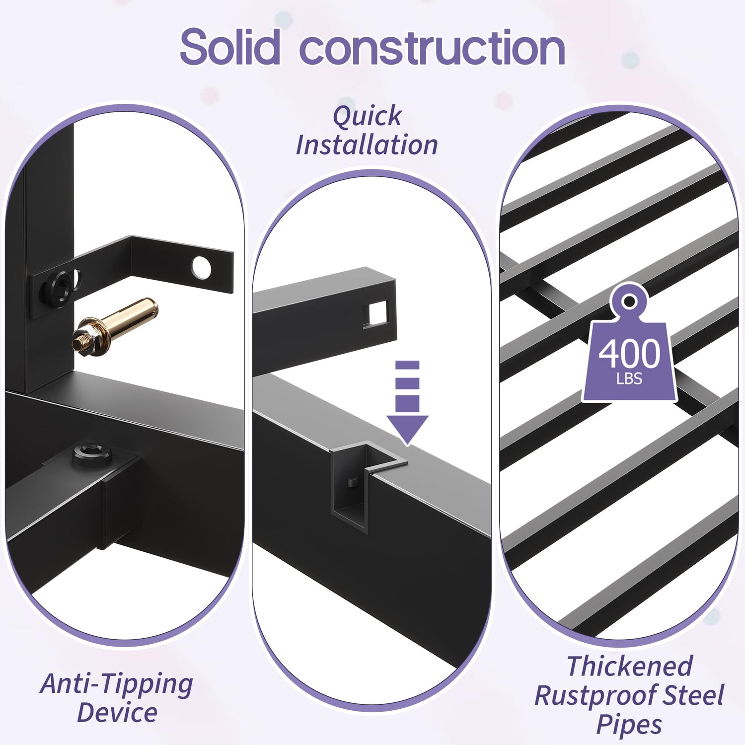 - 【Sturdy and Stable Structure】Low loft bed for kids Made of strong steel and premium Mdf material construction,10 sturdy steel pipes and 3 reinforced weighing steel pipes,have excellent rust resistance, oxidation and provide exceptional strength, stability.Twin loft bed for kids No Box Spring is Needed.
