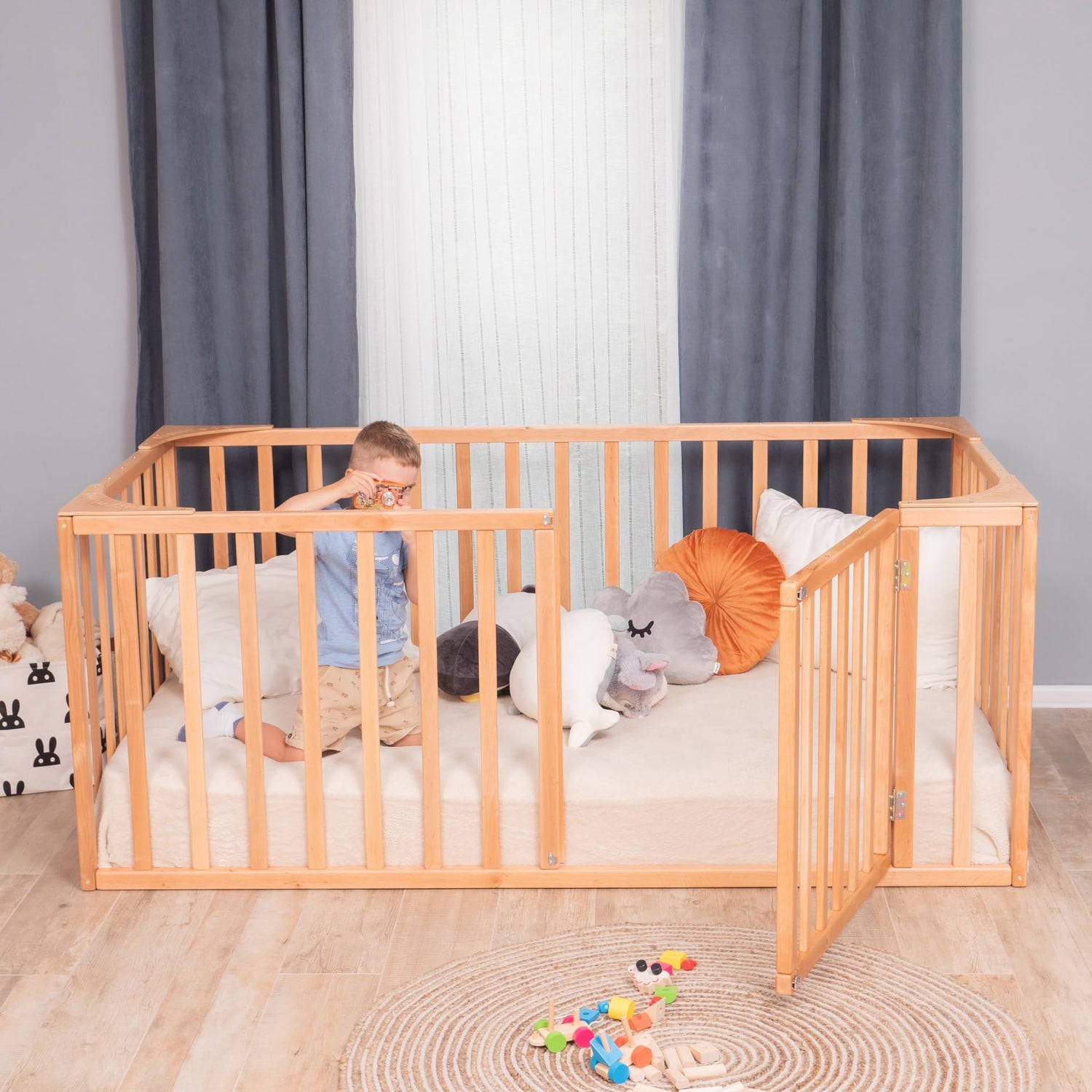BUSYWOOD Montessori Floor Bed with Rails - Kids Bed Frame - Floor Bed Frame Toddler - Toddler Bed - Montessori Bed - Toddler Floor Bed - Montessori Floor Bed - Toddler Bed Frame (Model 6.3, Floor bed)