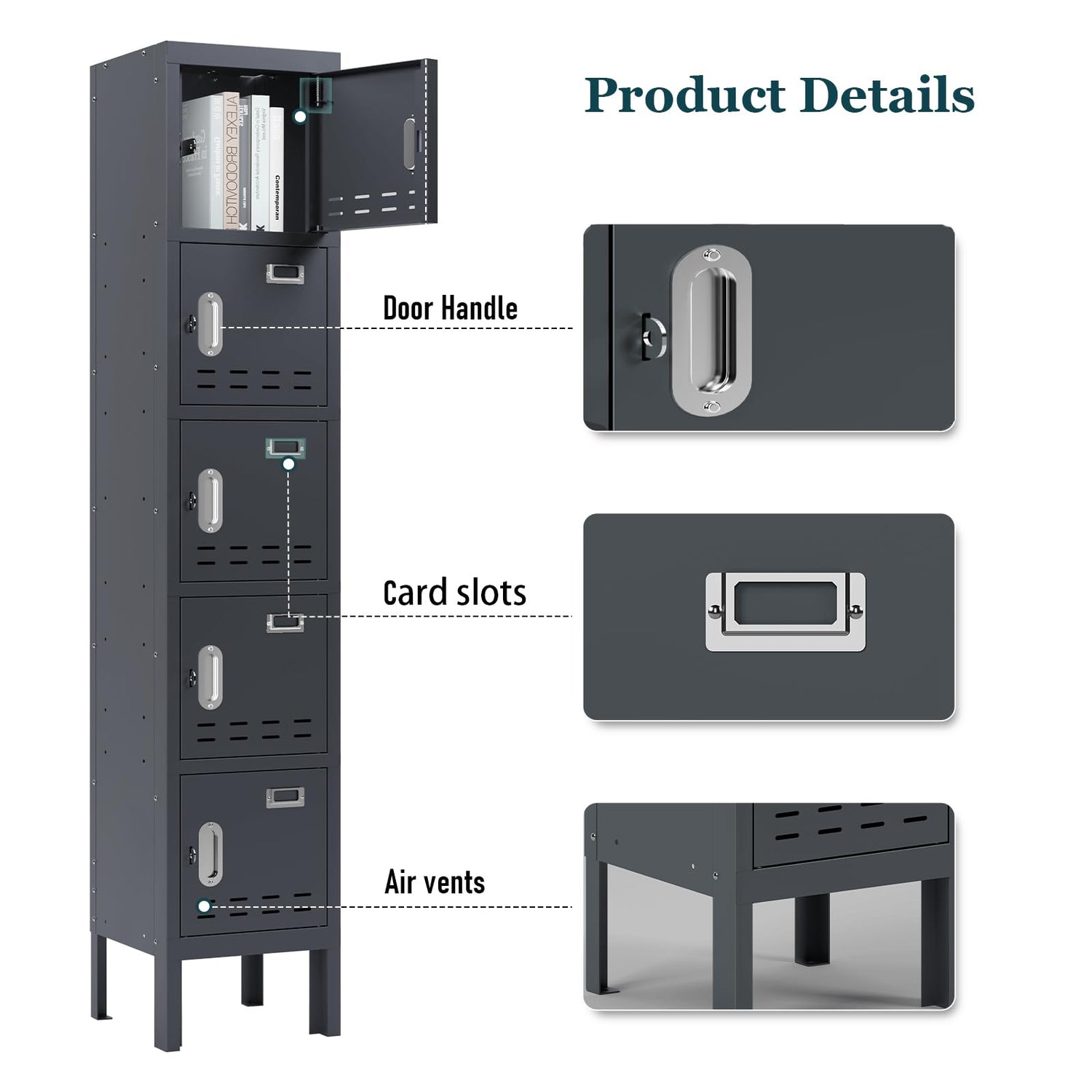 - 【Lockers with Five Door】66'' high lockers have 5 compartments size that are 13" high,12''wide,12" deep.The storage locker have enough space to store office supplies, school supplies, clothes, shoes, bags, shoes, bags, clothes, shoes, bags,