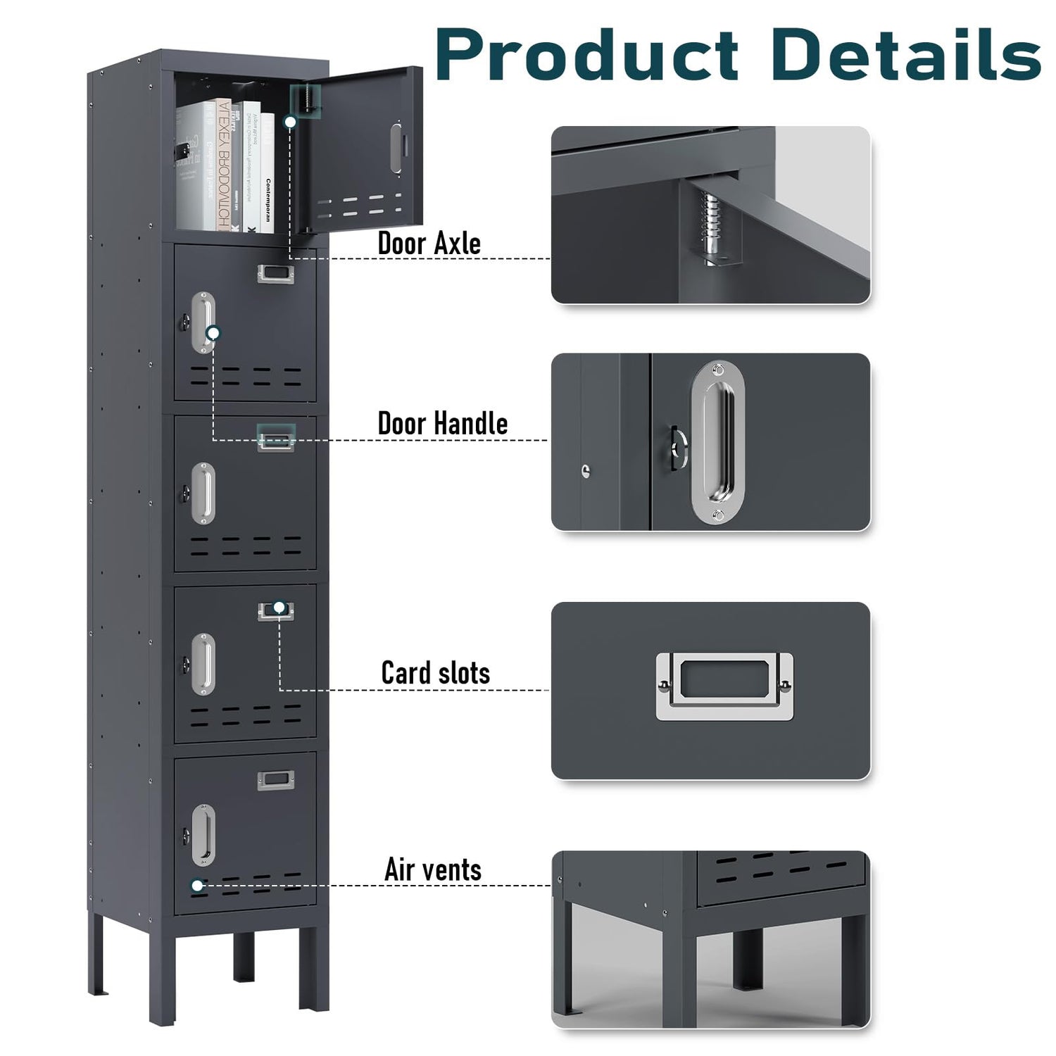 BUTISOW Metal Lockers - 66" Height Steel Lockers for Employees with 5 Door Storage Locker with Card Slot for Employees Gym School Home Office Garage - Assembly Required