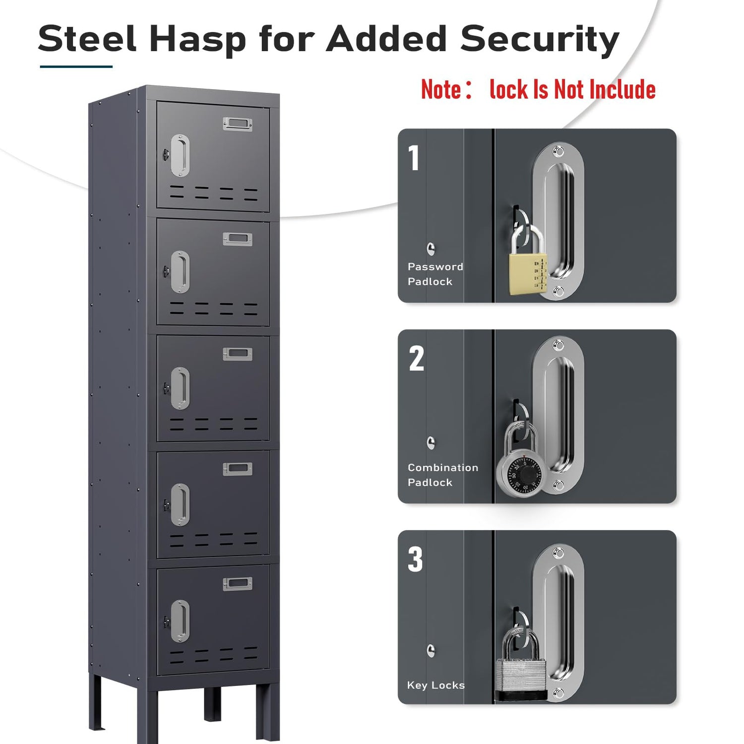 - 【Large Storage Capacity and Durable】 Metal locker 66.14 "H x 12"W x 12"D. Equipped with 5 separate compartments to meet your storage needs for items of different sizes. Locker are made of 16 gauge steel. Feature a durable powder coated finish available in Gray or Blue Durable not easy to rust and fade