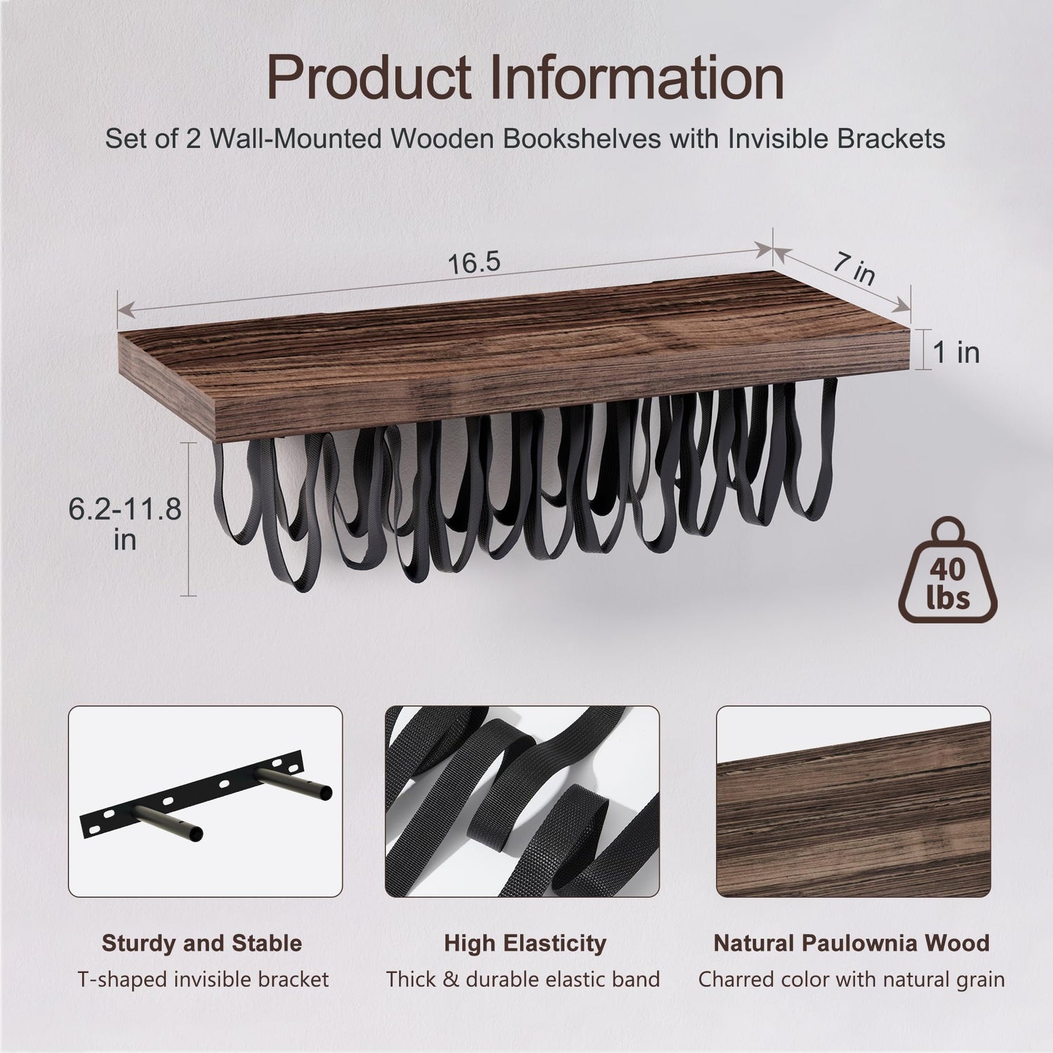 - Elevate Your Interior: Crafted from thick, high-quality Paulownia Wood with a surface color achieved through artificial carbonization, these floating bookshelves are lightweight yet sturdy. Paired with solid metal T-shaped wall brackets, they are easy to install