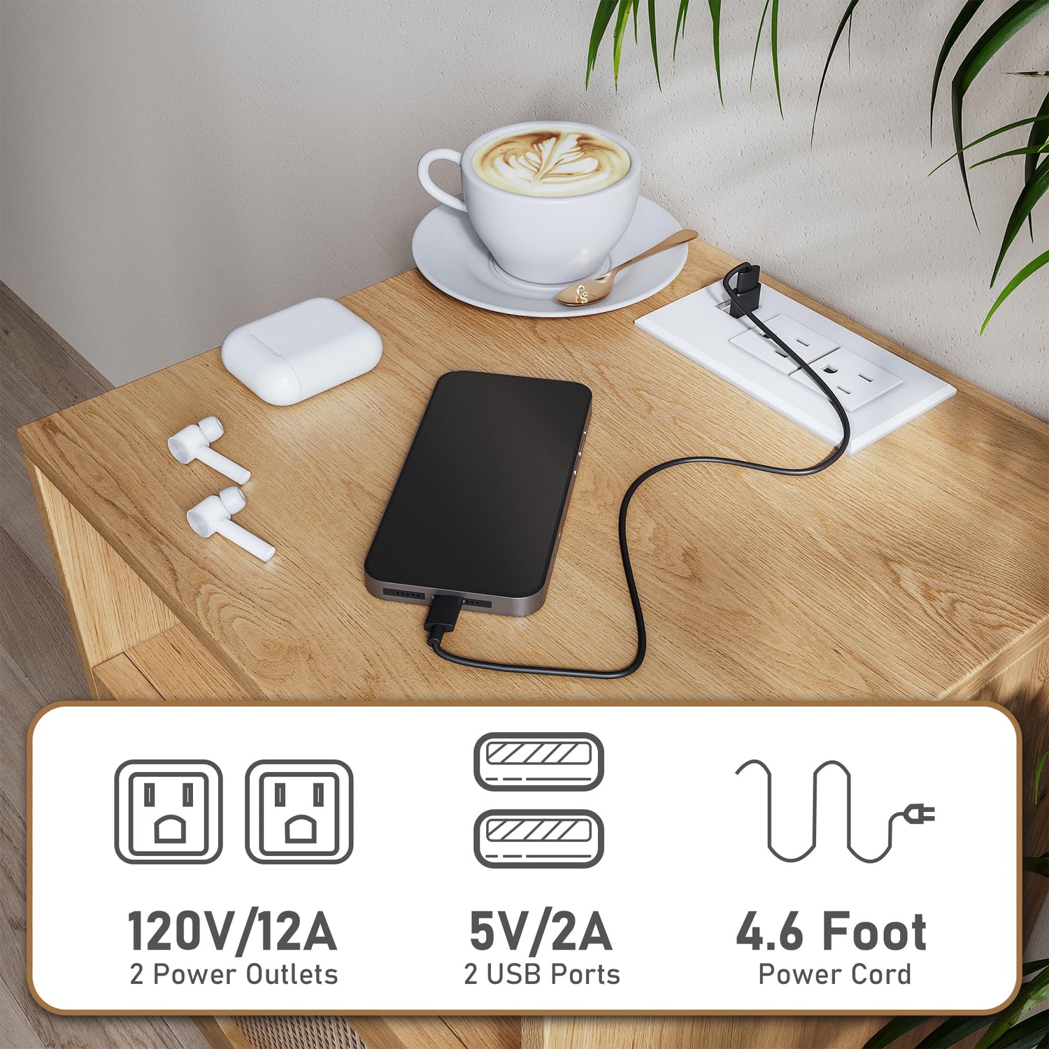 - Charging Station: Our nightstands come with two standard power outlets and two USB ports, ensuring conveniently power your phone, tablet, record player, and other devices. With a 4.6-foot long power cord, it allows flexibility to move the table to your sofa or bedside, ensuring easy access to power wherever you need it.