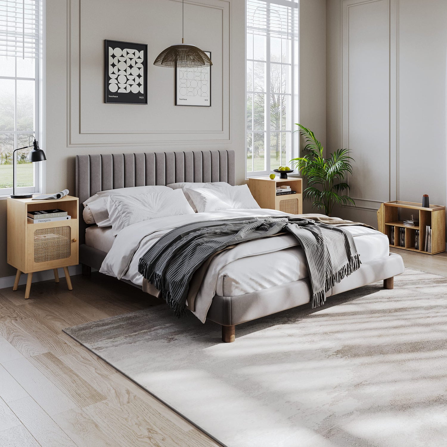- Ample Storage Space: This modern night stand features a spacious tabletop, open drawers, and a rattan storage cabinet, allowing you to neatly organize keys, phones, lamps, photo frames, and more. With overall dimensions measuring 15.7"L x 15.3"W x 27.5"H, this bedside table is the perfect size for your bedrooms.