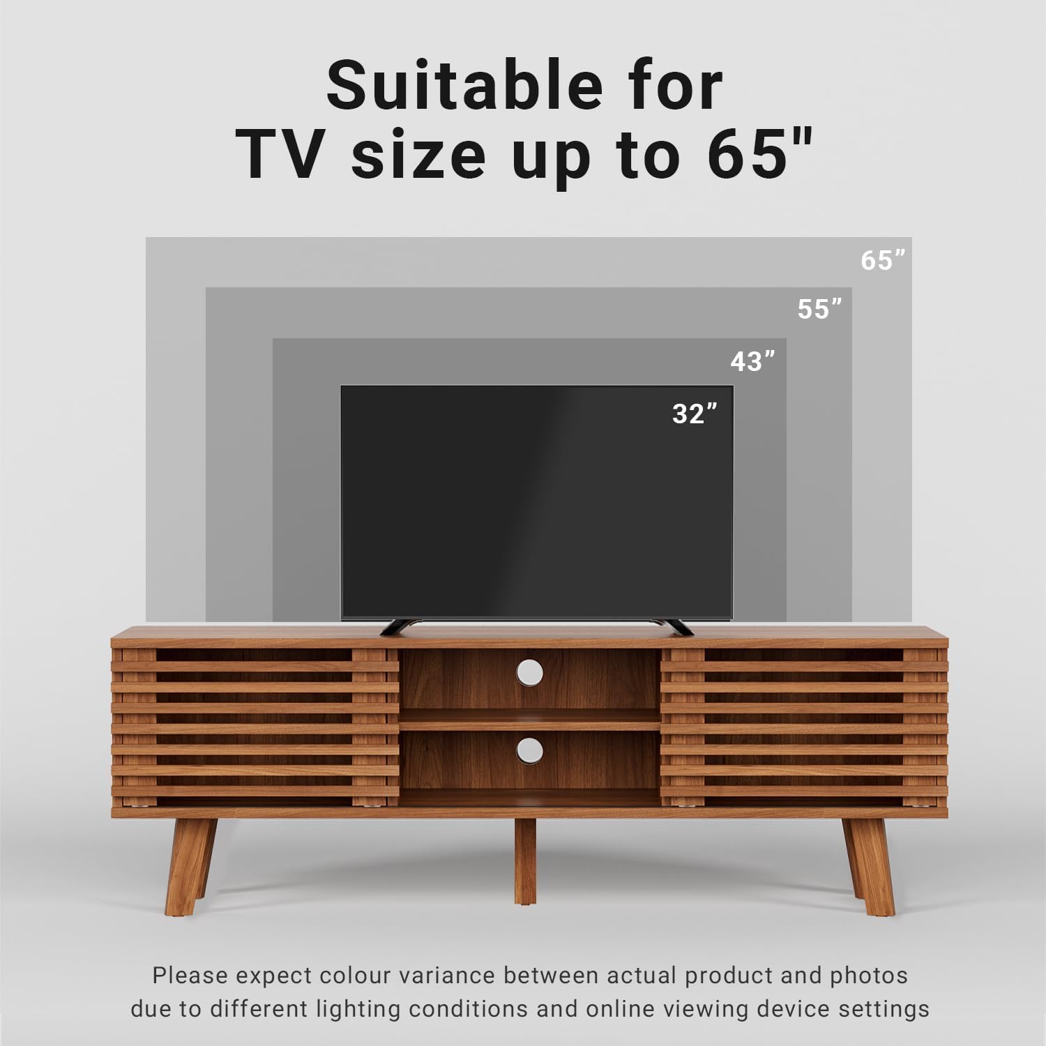 - 【Ample Storage Space 】 This 59-inch TV cabinet perfectly meets the storage needs of your living room.Size of TV stand:59''L* 15.5''D*20''H.The elegant sliding door design effortlessly accommodates a 65-inch large screen TV.