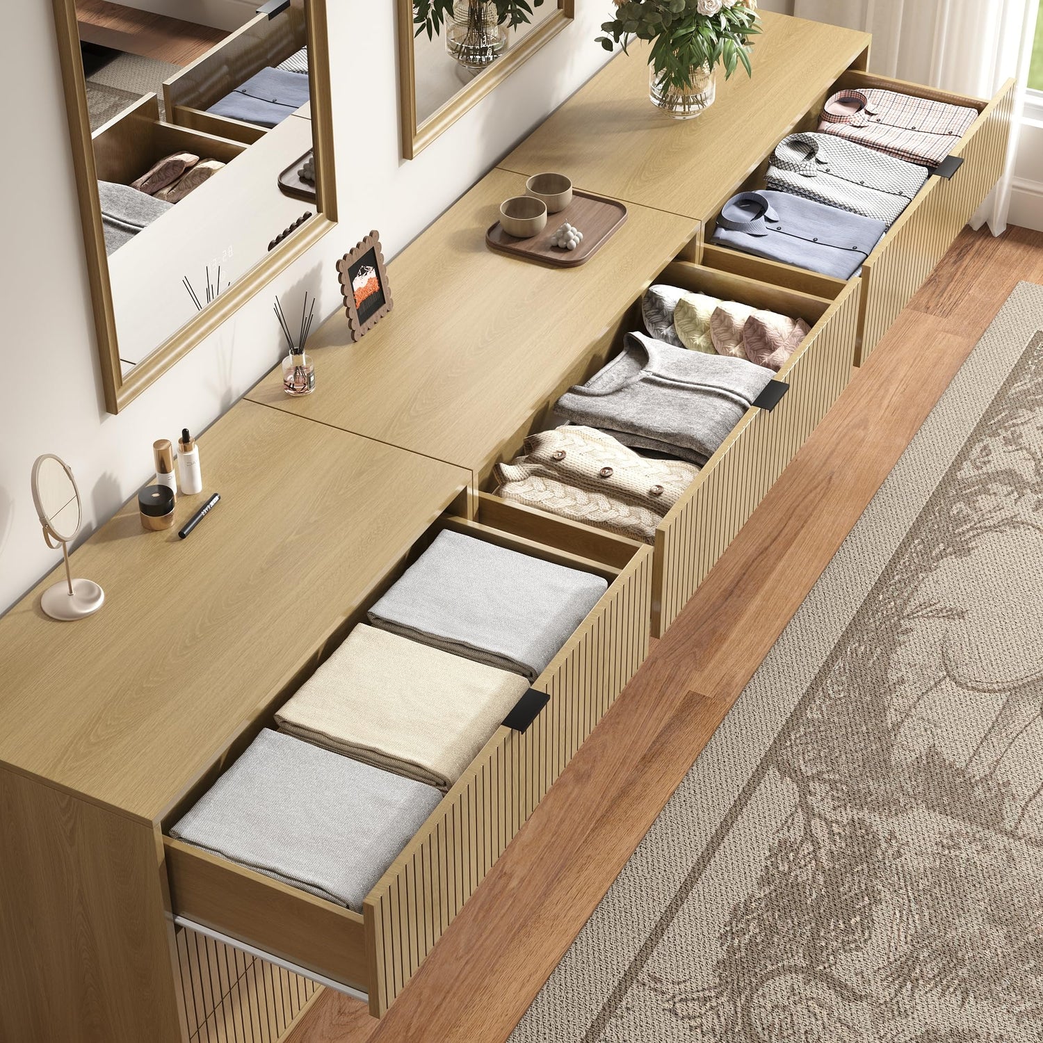 BVIUNTWO Fluted 9 Drawer Dresser,95 Inch Modern Chest of Drawers with Metal Handle,Wood Dresser Organizer for Bedroom,Living Room,Hallway,Natural Oak