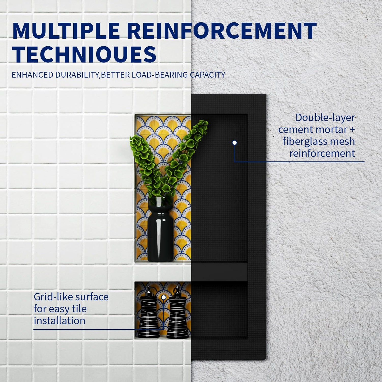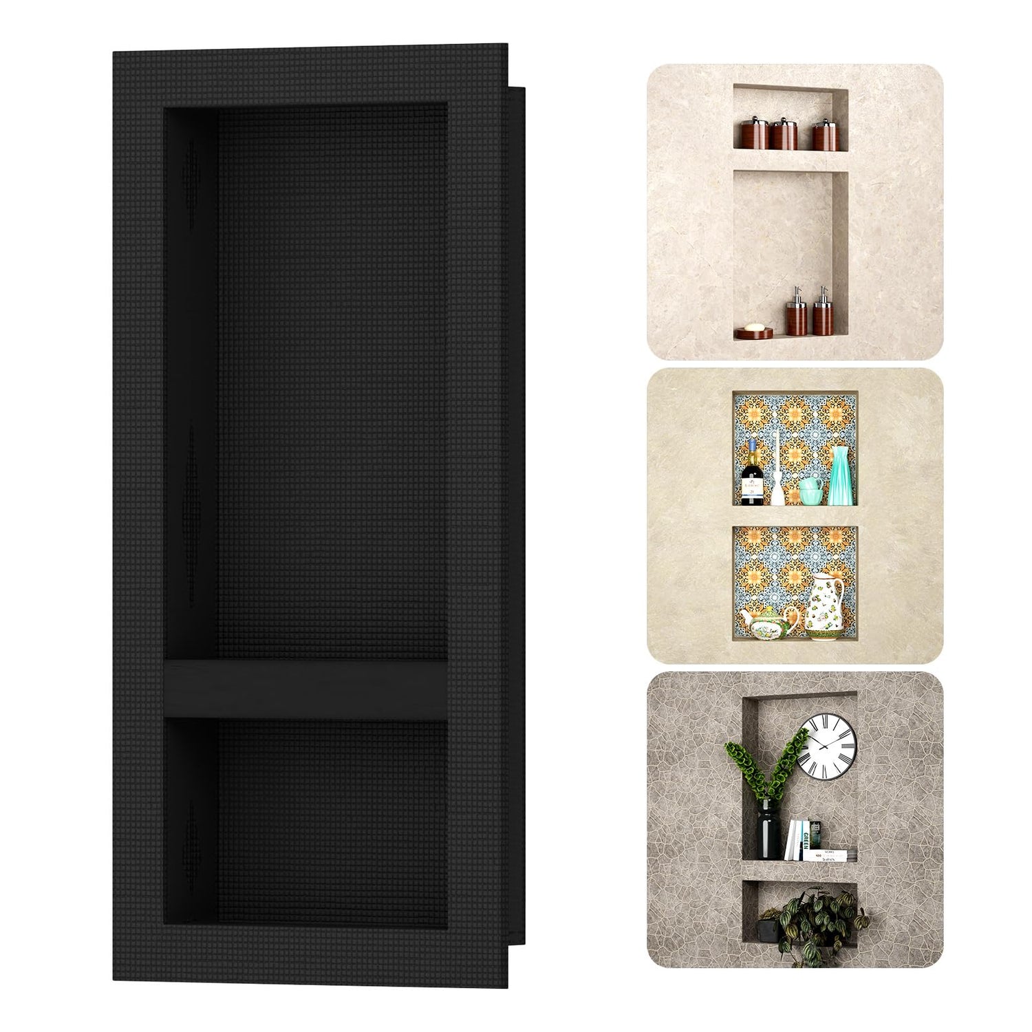 BWE Black Shower Niche Insert Tile Ready 16" X 32" Rectangle for Shower Wall Prefabricated Waterproof Double Shelves Recessed Niche for Shower Bathroom Storage