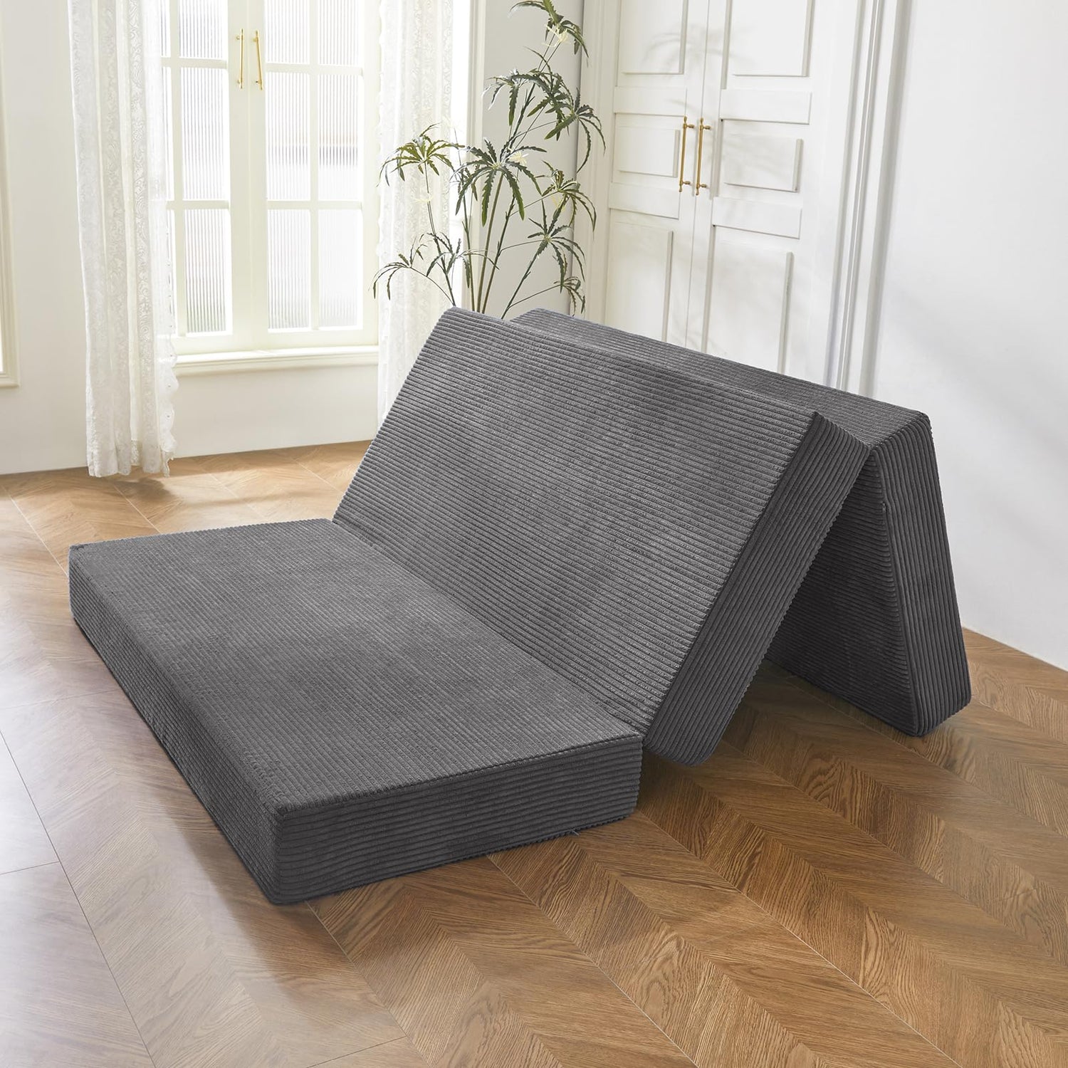 - Certified Safe Sleep: This tri-fold mattress is CertiPUR-US certified, ensuring that it is free of harmful chemicals. The Corduroy material used in its construction is not only cozy and soft, but also safe for you and your loved ones
