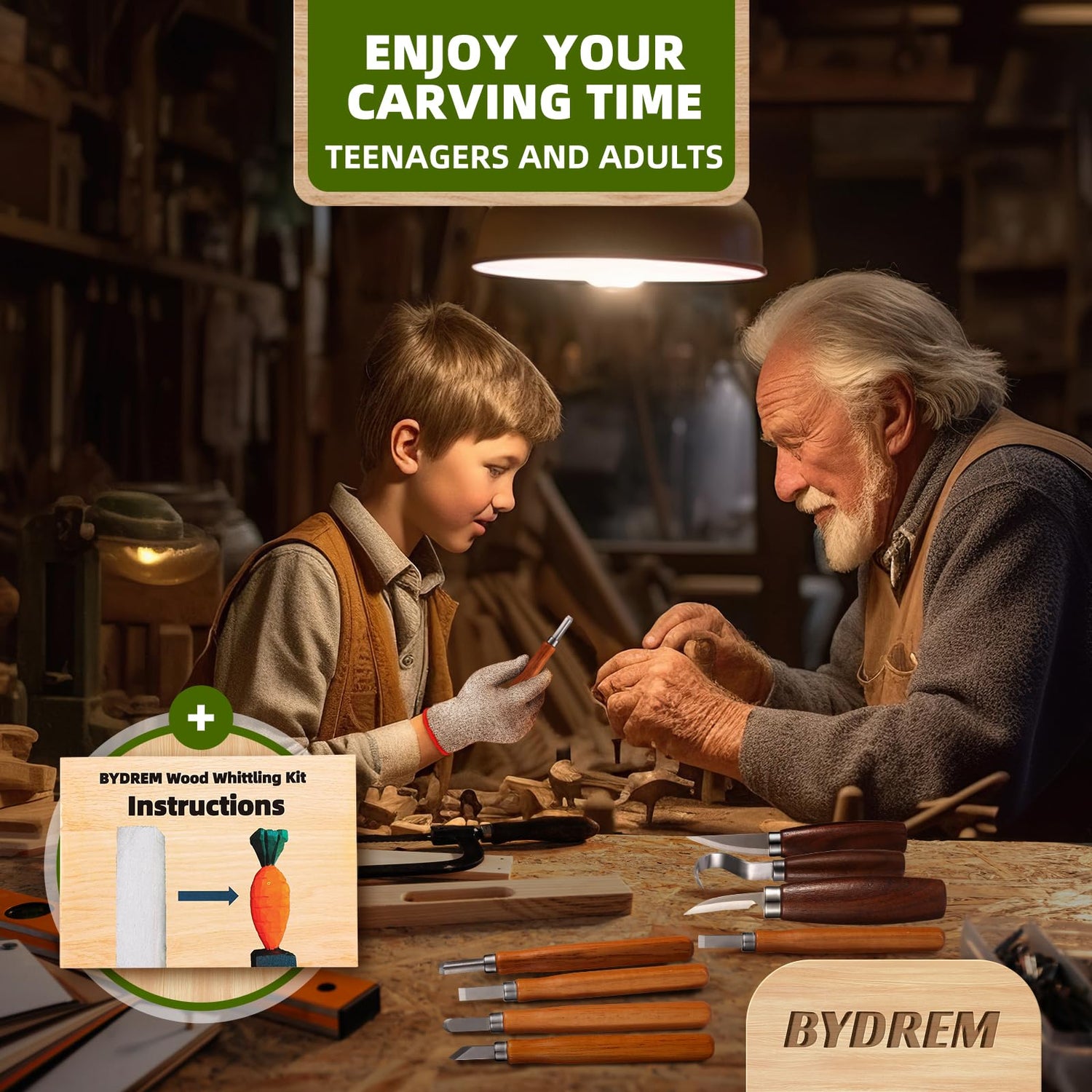 - 【Perfect Gift Idea】Our wood whittling kit come in a nice box. It can be given as a gift to teenagers and adults, the BYDREM wood whittling kit is undoubtedly a perfect choice if you want to give a gift full of creativity and personality. This wood carving tools not only suitable for beginners, but also professionals.