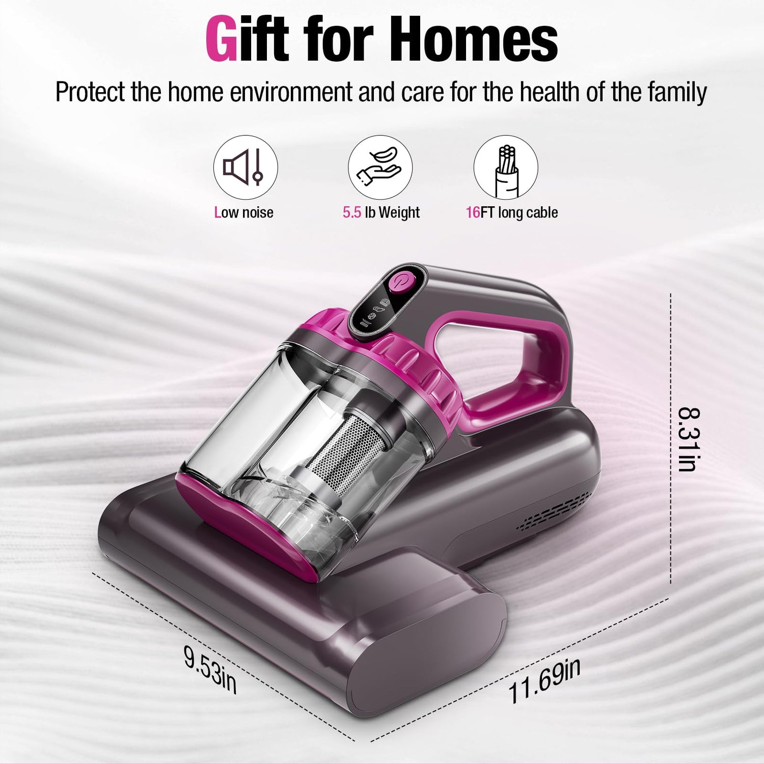 • 【EFFICIENT FILTRATION】This bed vacuum cleaner uv-c is equipped with a high-speed motor and uses dual-cyclone filtration technology. It features a stainless steel filter, HEPA filter, and a multi-layer sponge intake and exhaust design, along with a dual dust cup structure to effectively block dust and filter 99% of fine particles. This ensures optimal filtration performance, providing you with a more thorough and efficient cleaning experience.