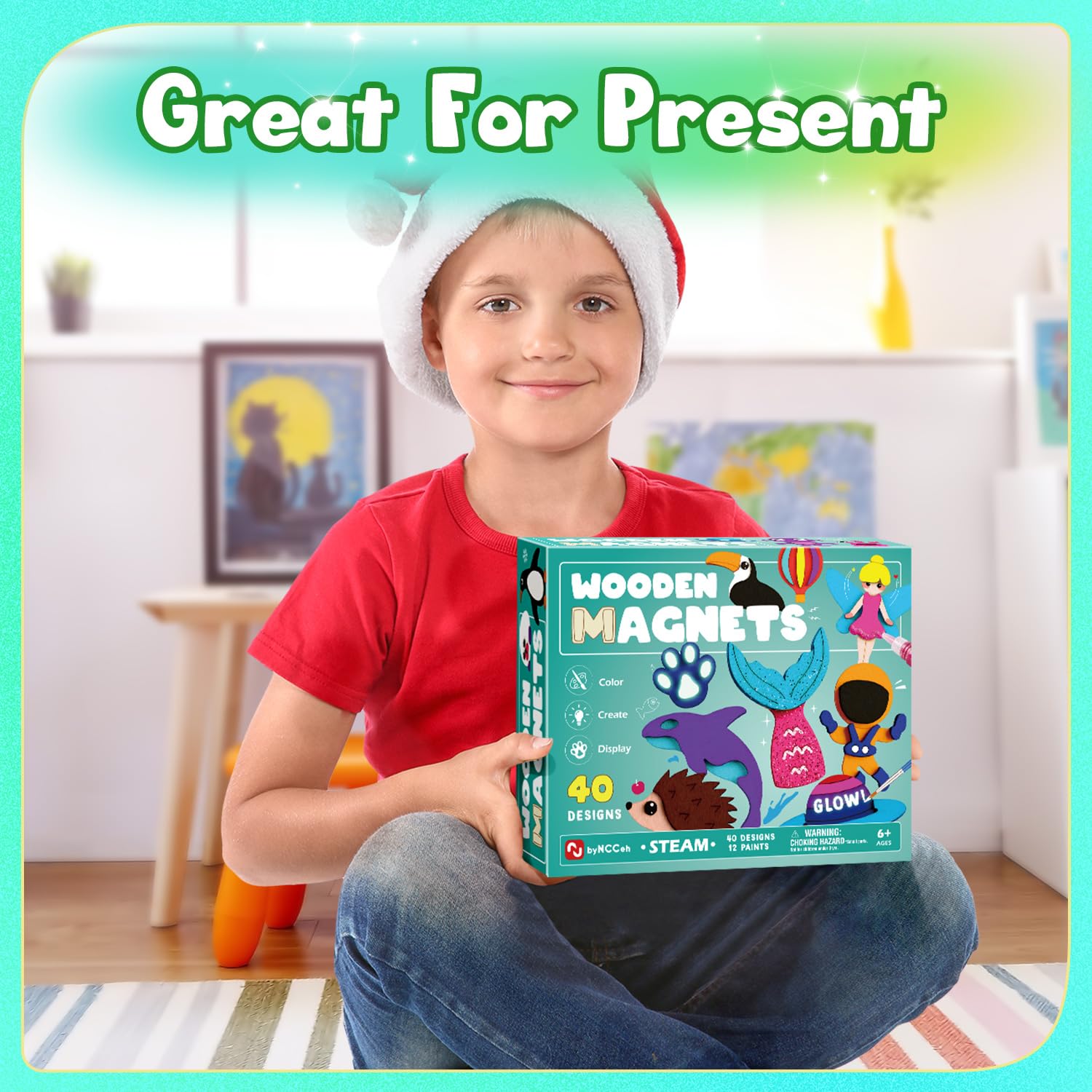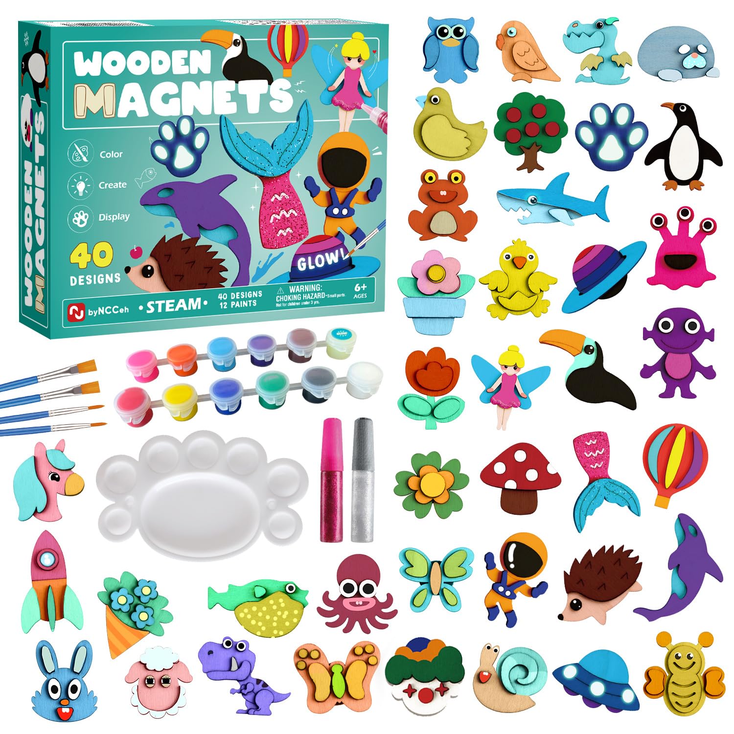 Byncceh DIY Wooden Magnets, 40 pcs Magic Magnetic Paint Set, Wood Arts and Crafts Painting Kit for Kids, Make Your Own Fridge Magnets Craft Kits Party Favors Gifts Toys for Girls Boys Ages 6-8 8-12