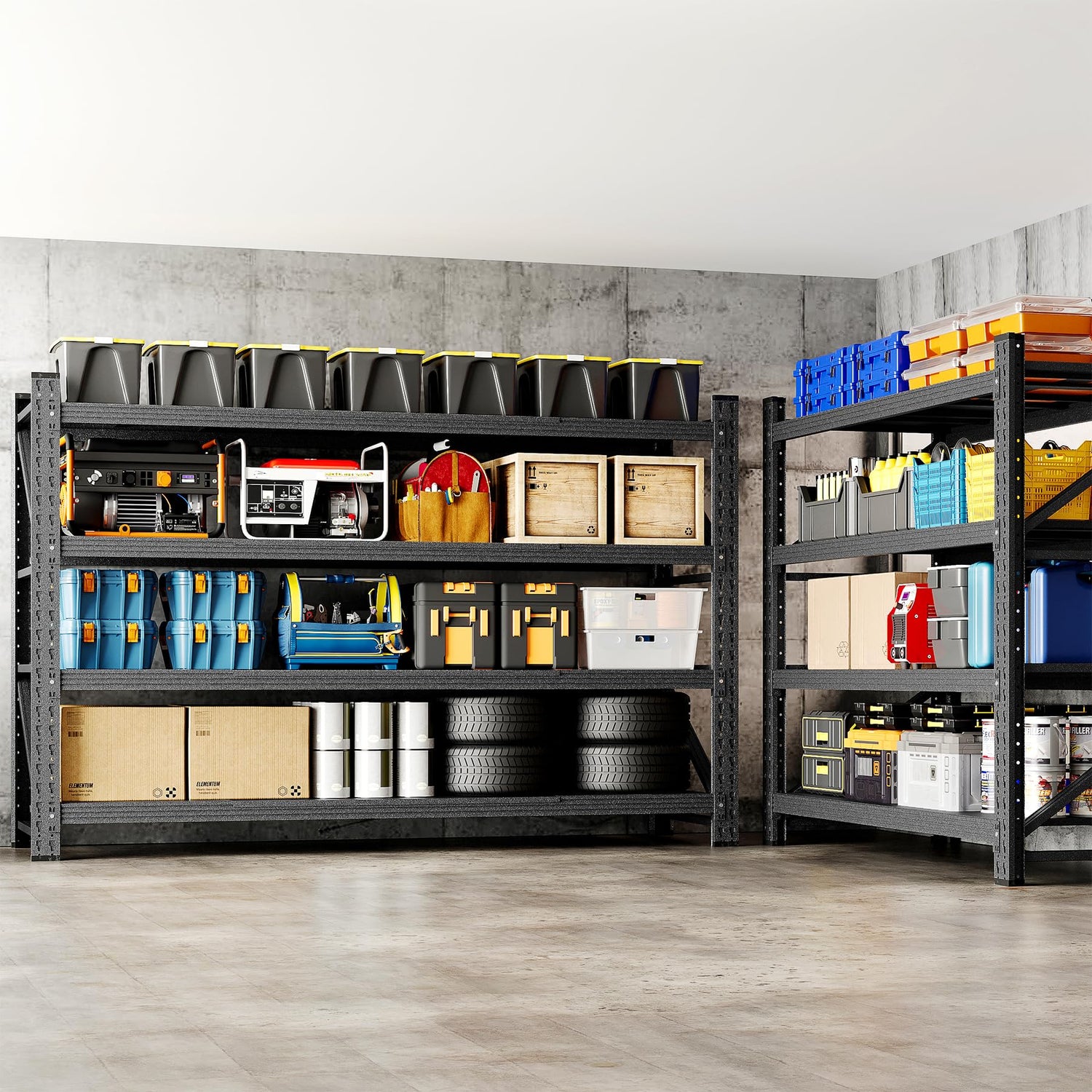 - Stronger stability: The heavy-duty garage rack is handled firmly on the sides. The diagonal of each heavy-duty shelf adds thickened reinforcement ribs to prevent loosening of the shelves, increasing overall stability, and storing heavy-duty tools and boxes is more stable and firm.