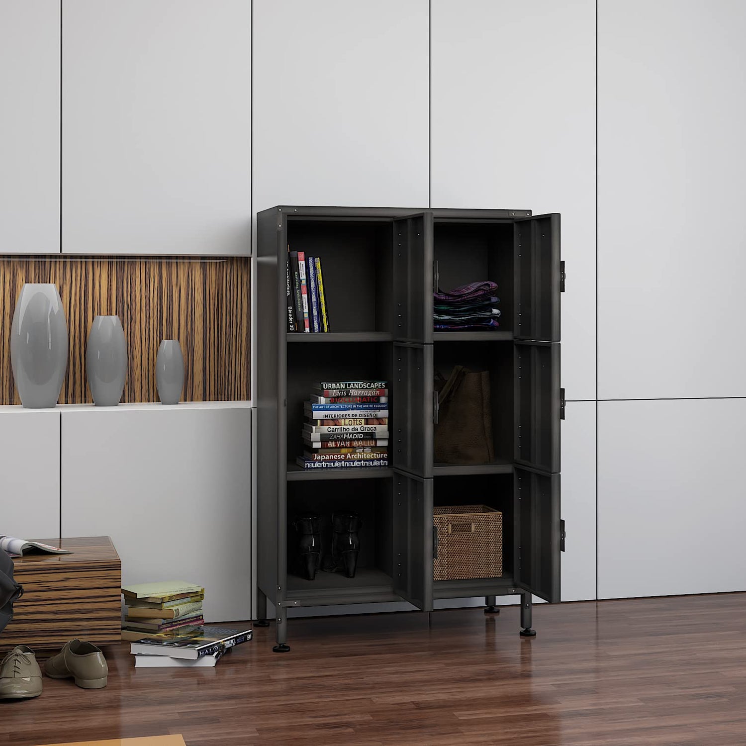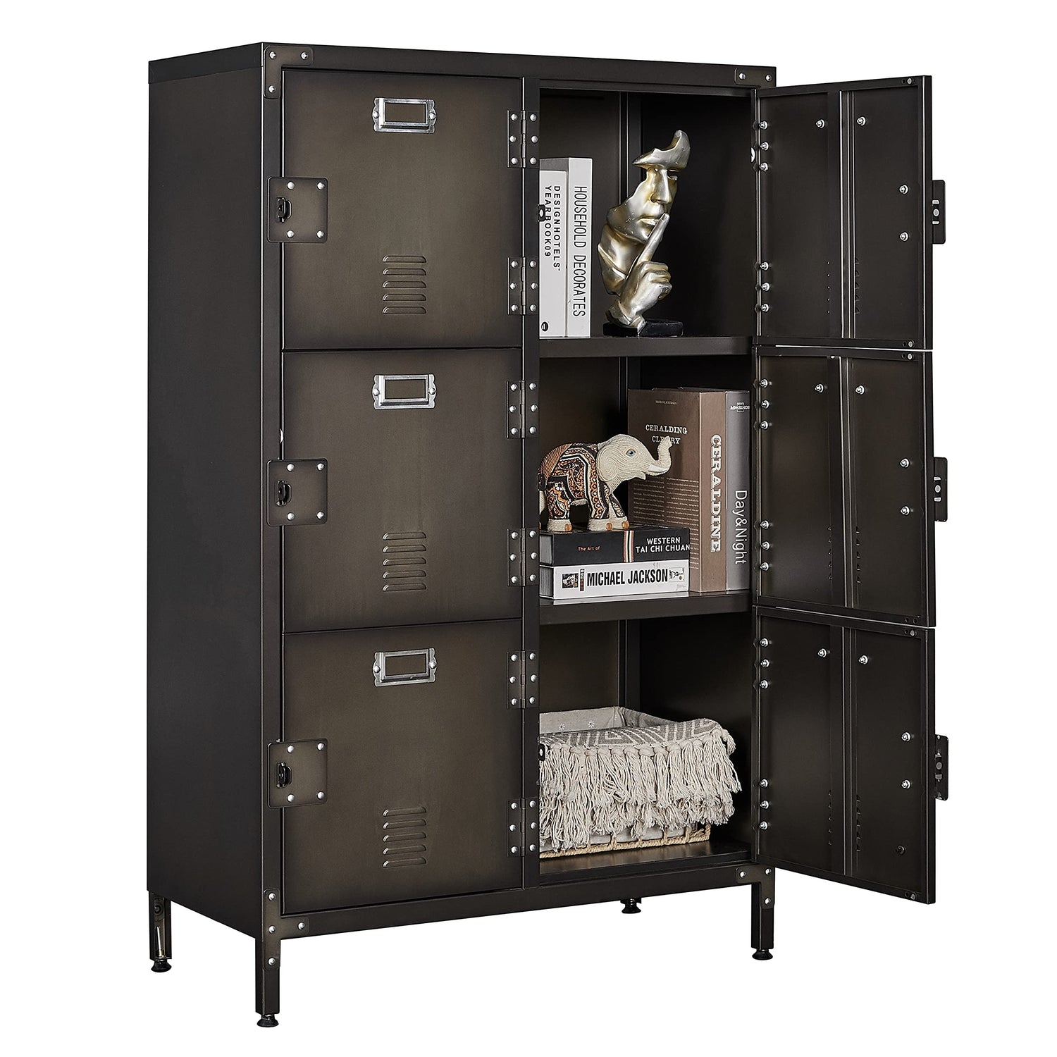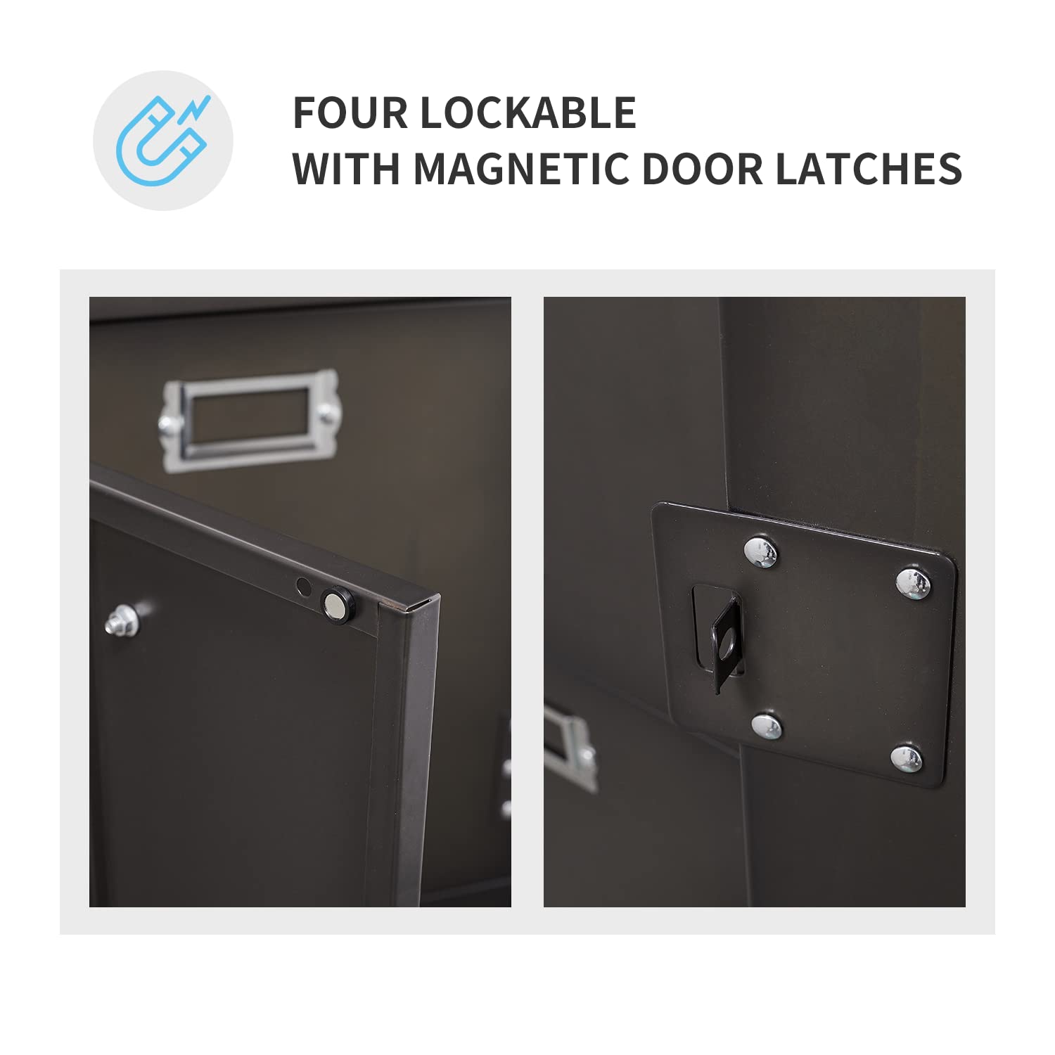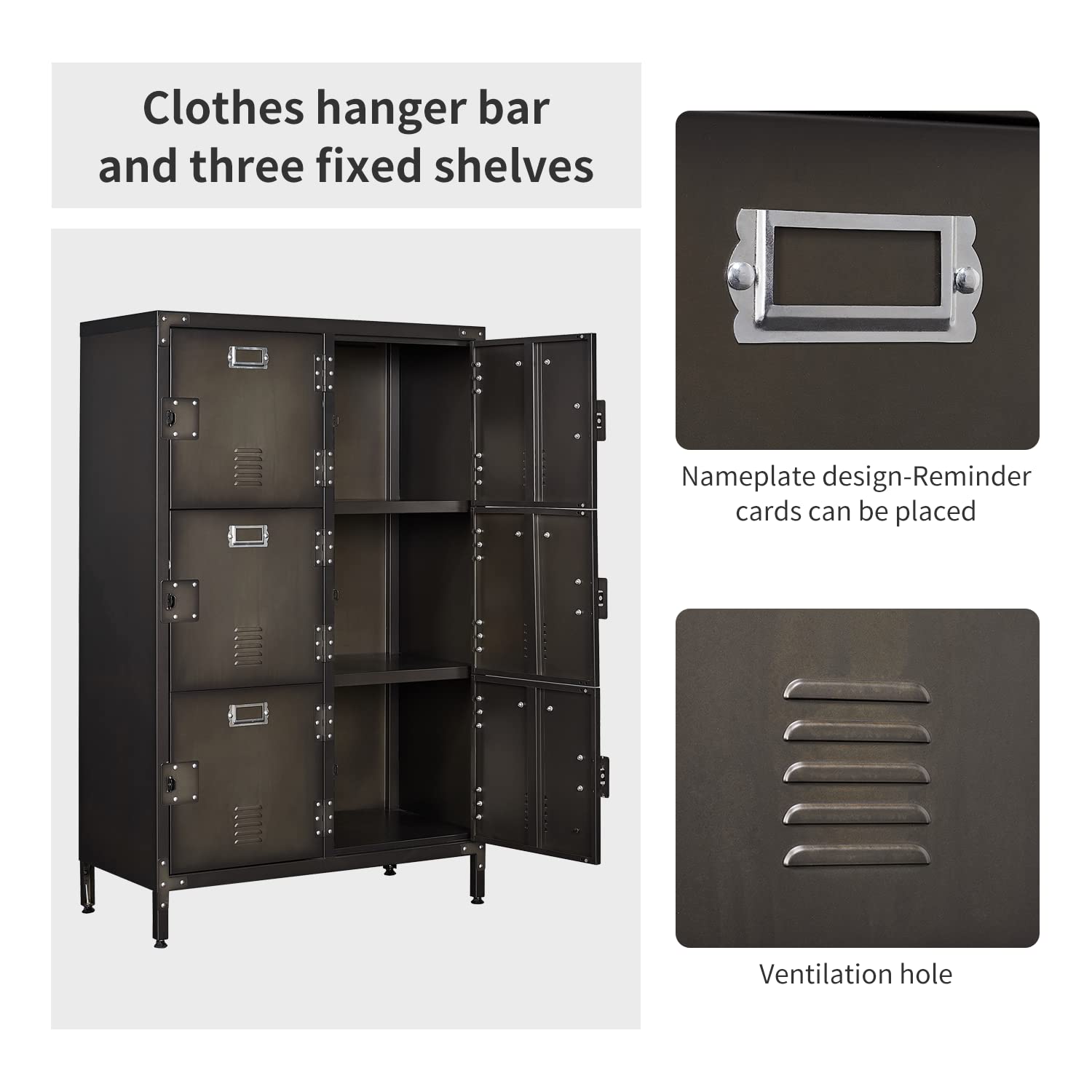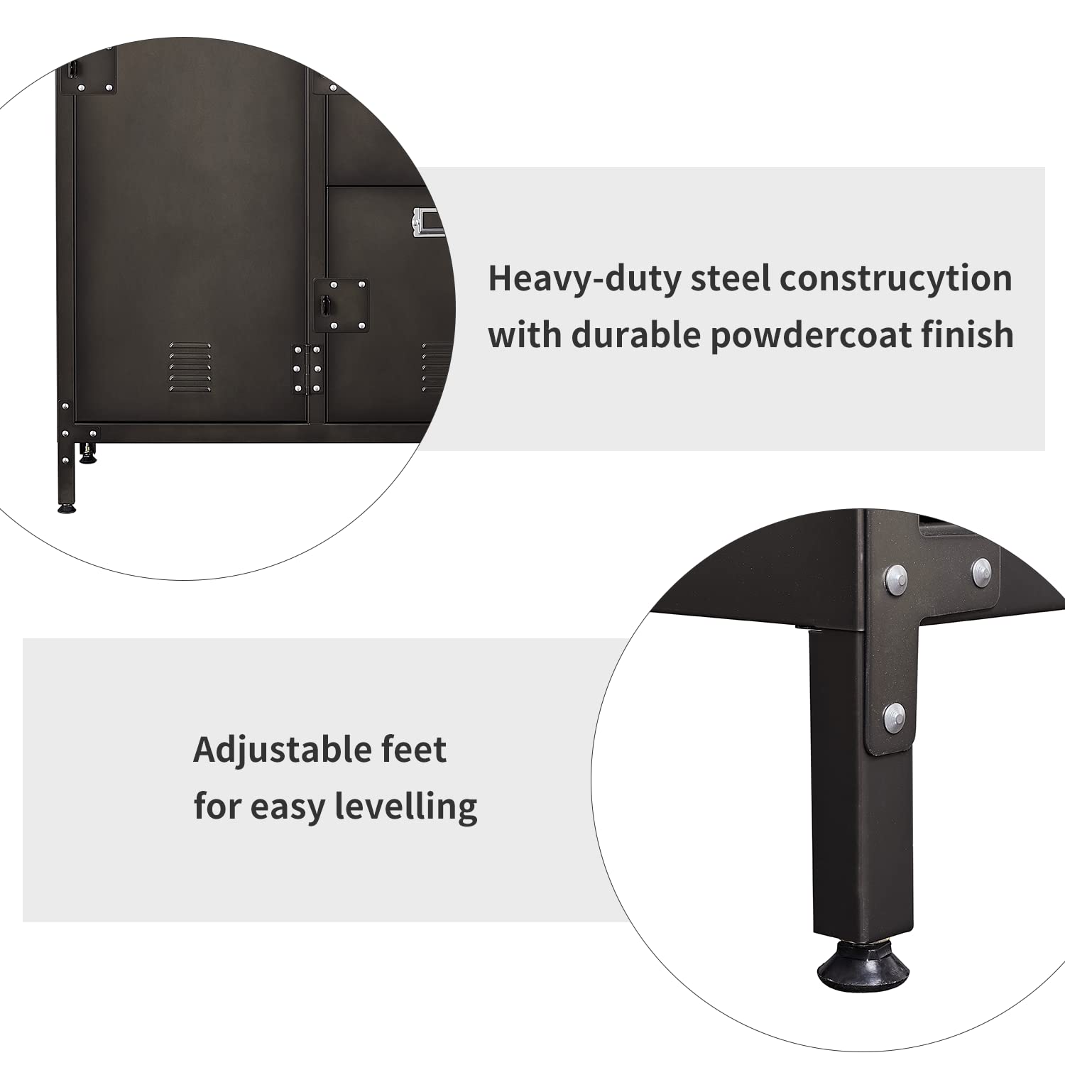 - Thoughtful Design- Our metal lockers are designed with padlocks, and all four doors can be locked to protect your belongings. In addition, the vent design on the door can maintain the normal circulation of air and ensure that there is no peculiar smell inside the cabinet.