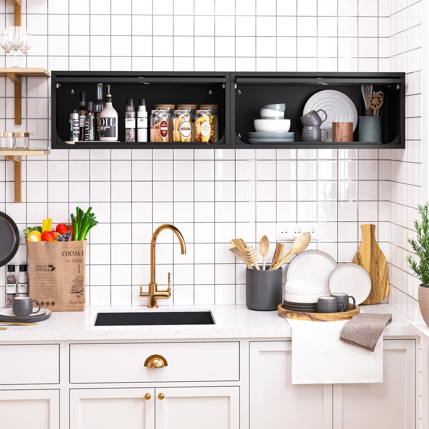 - 【Up-flip door design】: The storage cabinet adopts an up-flip door design, and the maximum opening and closing angle can reach 90°. And after the door panel is opened, the door panel can be placed inside the cabinet above the cabinet, which saves space and is very convenient.