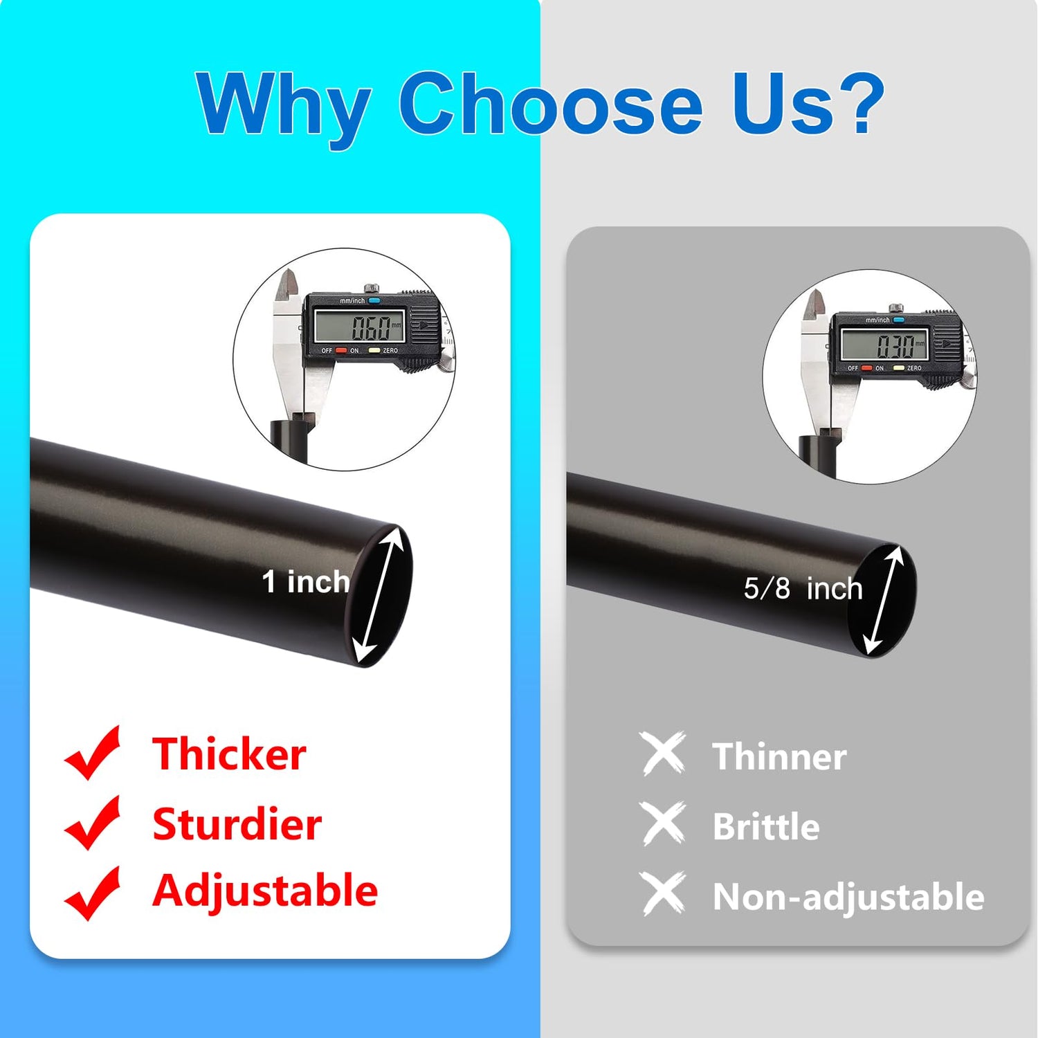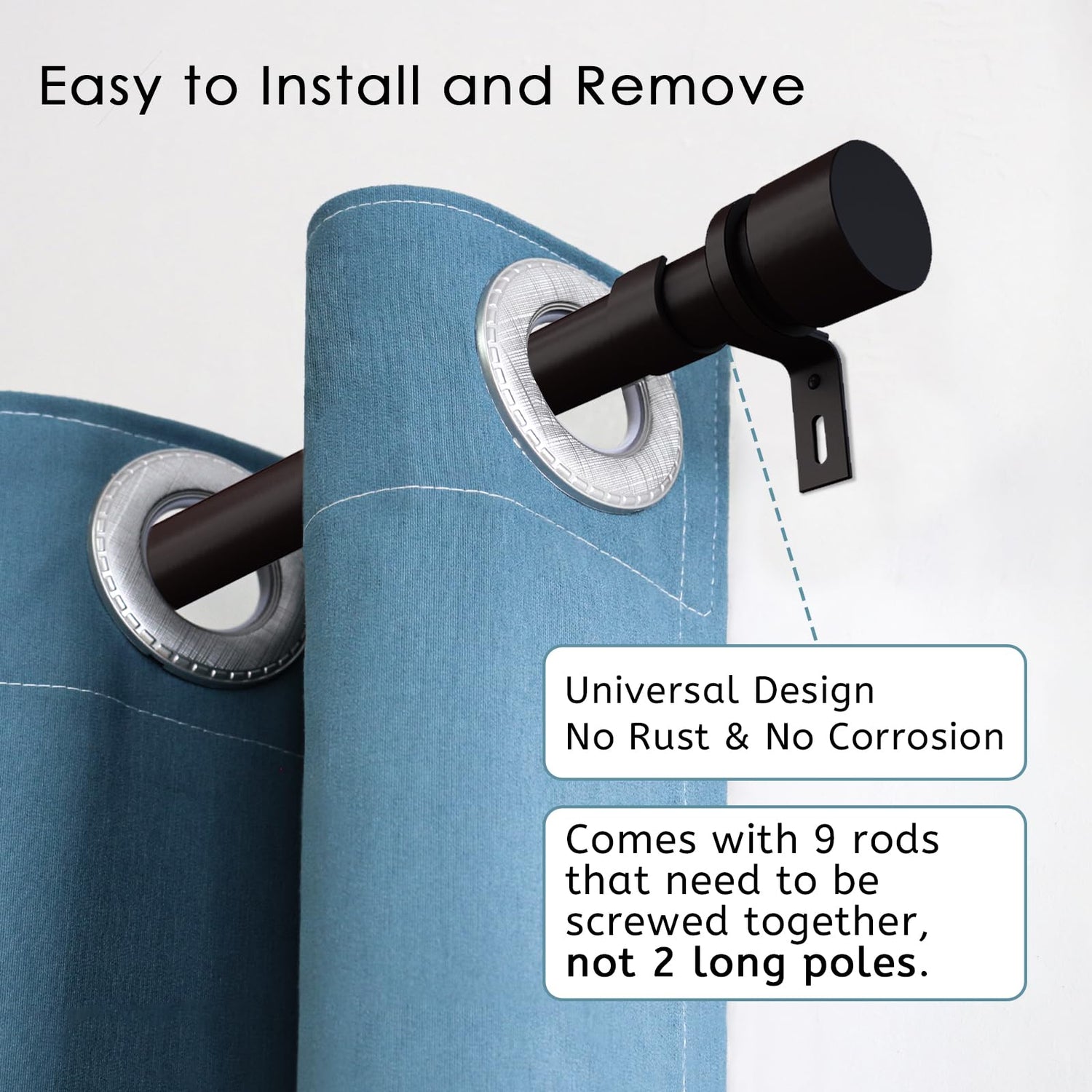 - ADJUSTABLE LENGTH: 0.6mm thickness 1 Inch diameter curtain rod adjusts from 16 to 144 inches or 150 inches max. Comes with 9 rods that need to be screwed together, not 2 poles