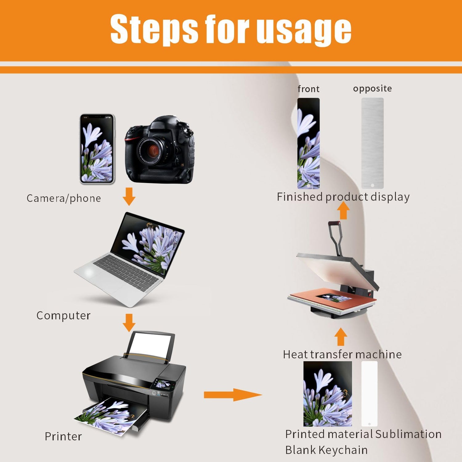- Transfer the pattern for 50-60 seconds at 190-200℃(374-392℉). Note: There is a protective film on the surface of the bookmark. Please remove it before use. This product is printed on one side.