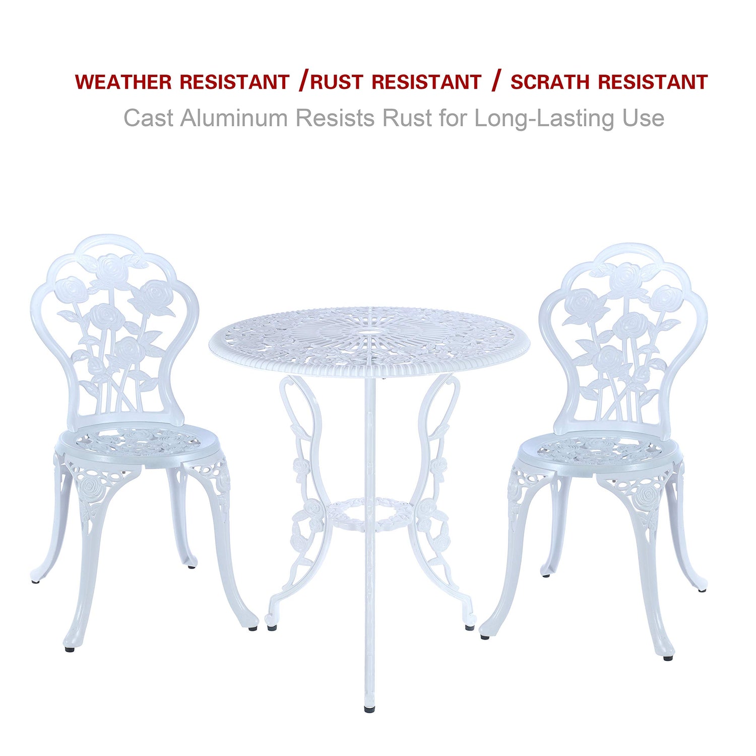C/G 3 Piece Bistro Set,Outdoor Patio Set,Anti-Rust Cast Aluminum Bistro Table Set for Park Yard Front Porch Furniture(White)