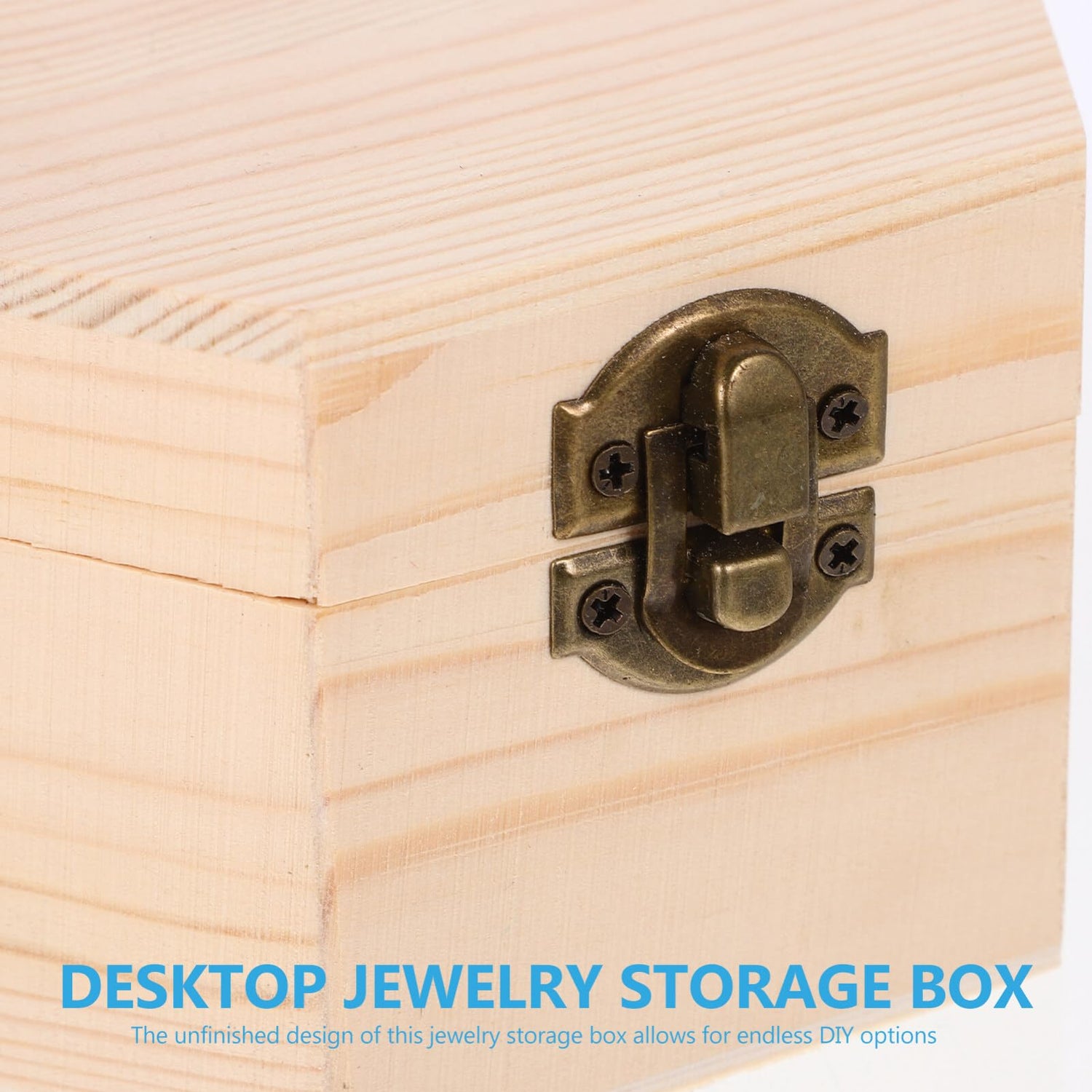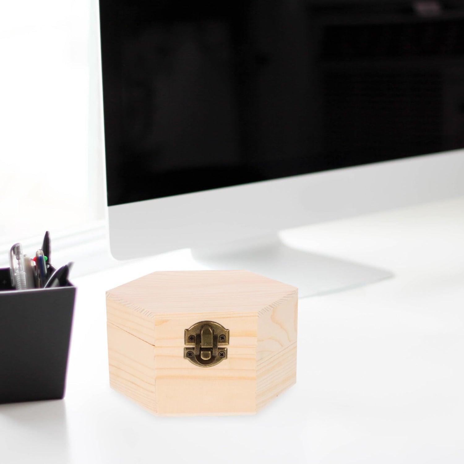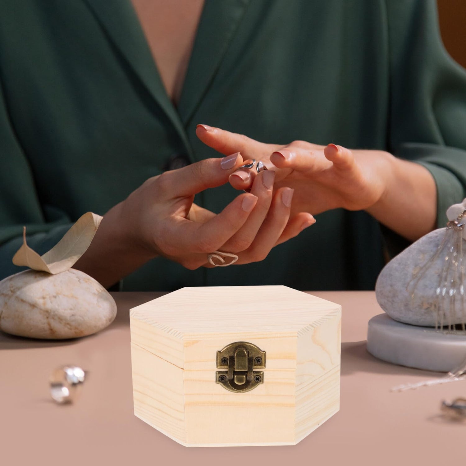 Cabilock Plain Unfinished Box, Hexagon Unpainted Wooden Jewelry Box Container, Wood DIY Storage Chest Treasure Case with Locking Clasp for Crafts, Art, Hobbies, Projects