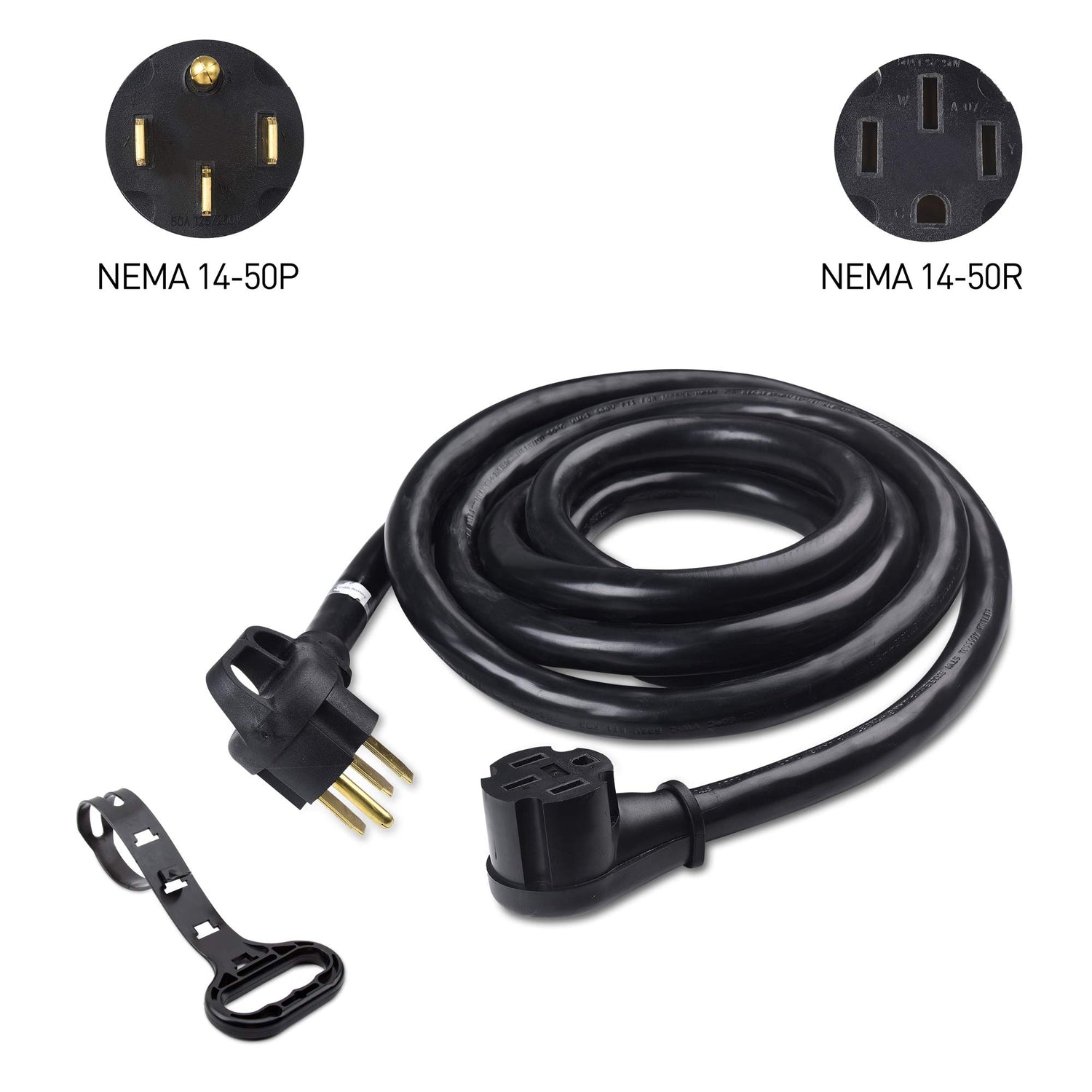 - Rugged & safe RV power cord 50 amp with a 14 50R receptacle to extend the existing 50 amp RV cord; Safer unplugging with a right angle easy-grip power plug on this tesla charger extension cable