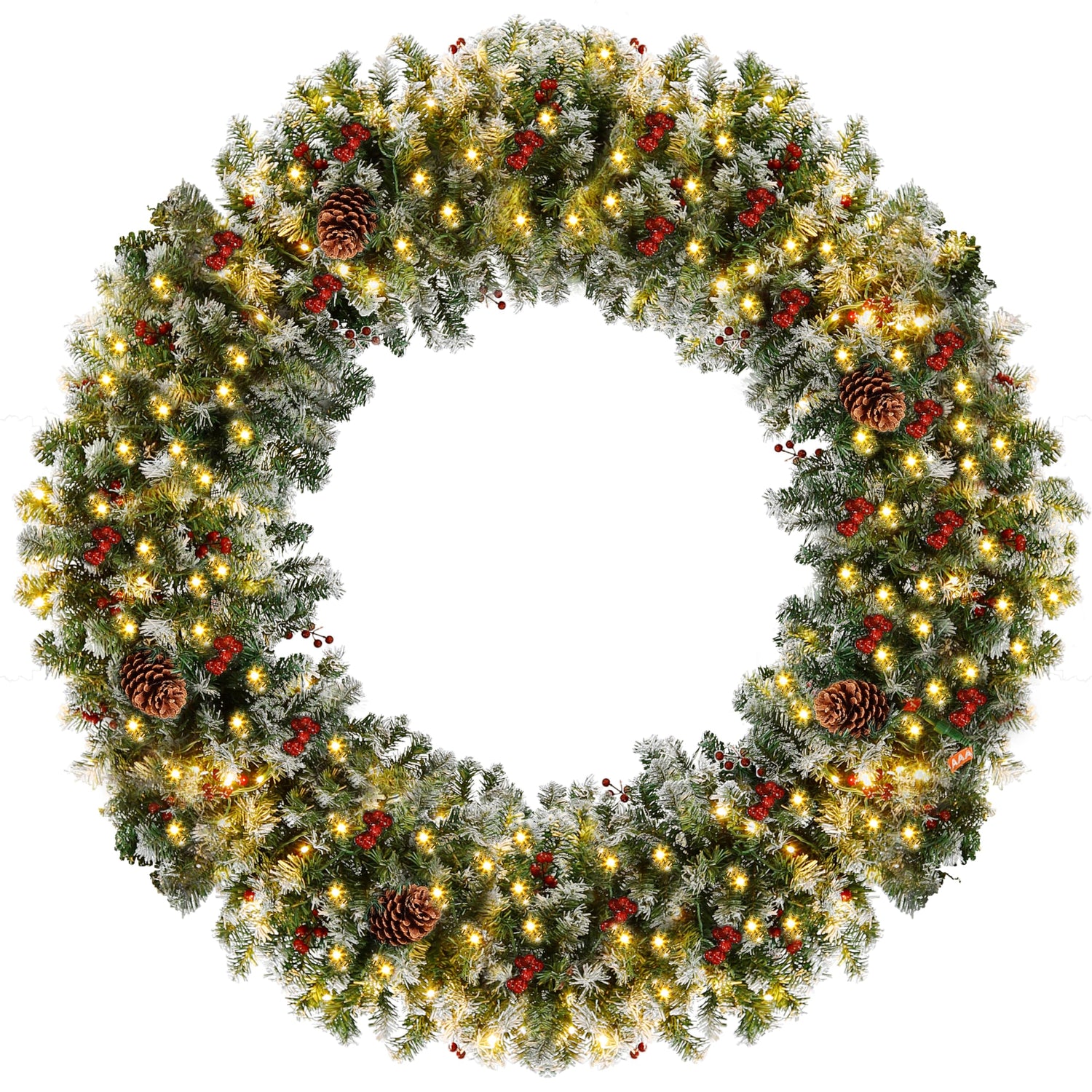 - 48 INCH PRELIGHTED CHRISTMAS WREATH: This christmas wreath with lights has a total of 520 branches and 192 lights, creating a lush hanging decoration