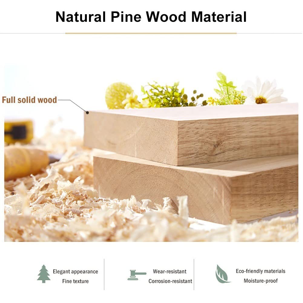 - 【Natural Solid Wood】: It is made of fir pine wood with fine and natural texture, strong and long lasting. After a series of processes such as mechanical cutting, splicing, and manual polishing, the natural texture and wear resistance of wood are retained.
