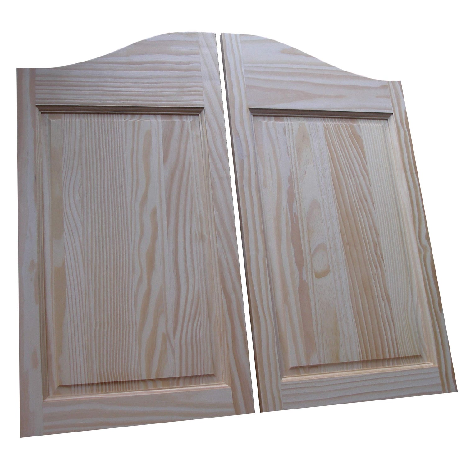 Details: These gorgeous sturdy 2-paneled pine saloon doors are master crafted with the environment in mind. They have a solid core with premium select real pine wood and real pine wood veneers applied with state of the art technology - the end result - the quality of true paneled pine saloon doors with a reduced impact on old growth pine foresting. These pine paneled saloon doors come unfinished - ready to paint or stain. Included heavy duty hinges have polished brass finish with auto-close, bi-directional swing and a convenient hold-open feature that allows one or both panels to remain in opened position when desired. Same hinges are available in satin nickel, oil rubbed bronze, and black. See our storefront for details. For questions or custom door quotes please contact us.