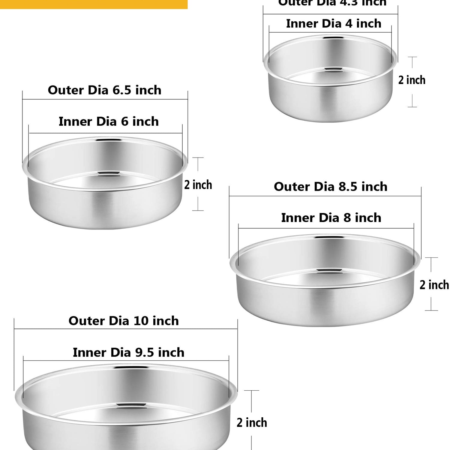 Cake Pan Set - 4”, 6”, 8”, 9.5”, P&P CHEF 4 Piece Round Baking Cake Pans Tin Stainless Steel, Oven/Pot/Dishwasher Safe, Heavy Duty & Non Toxic, Mirror Finish & Easy Clean